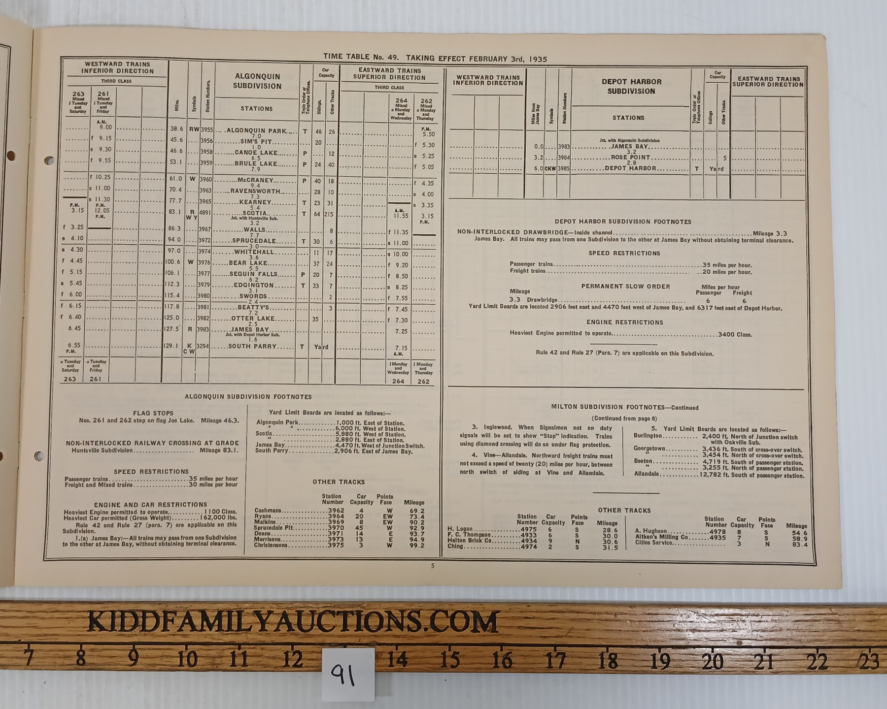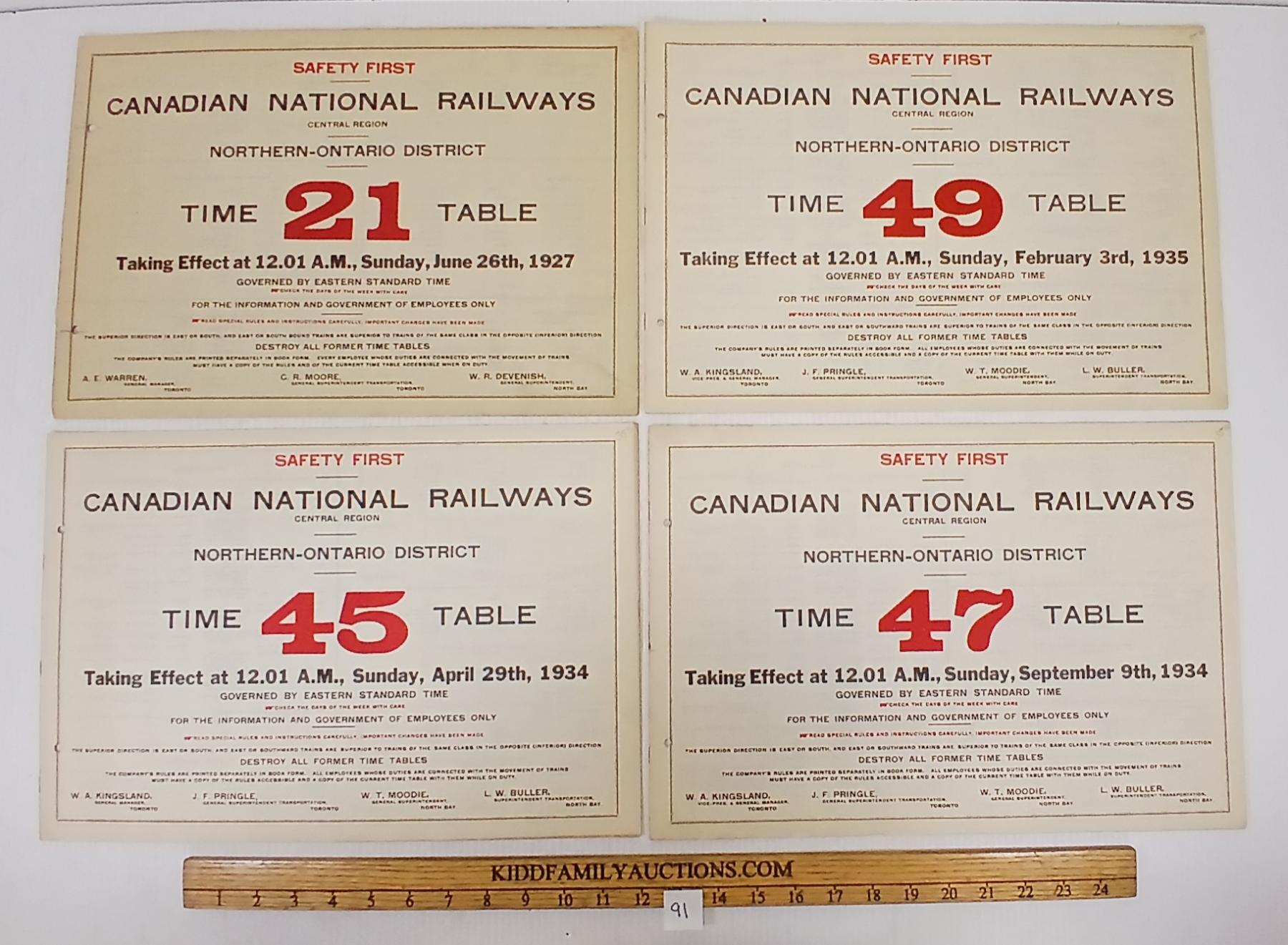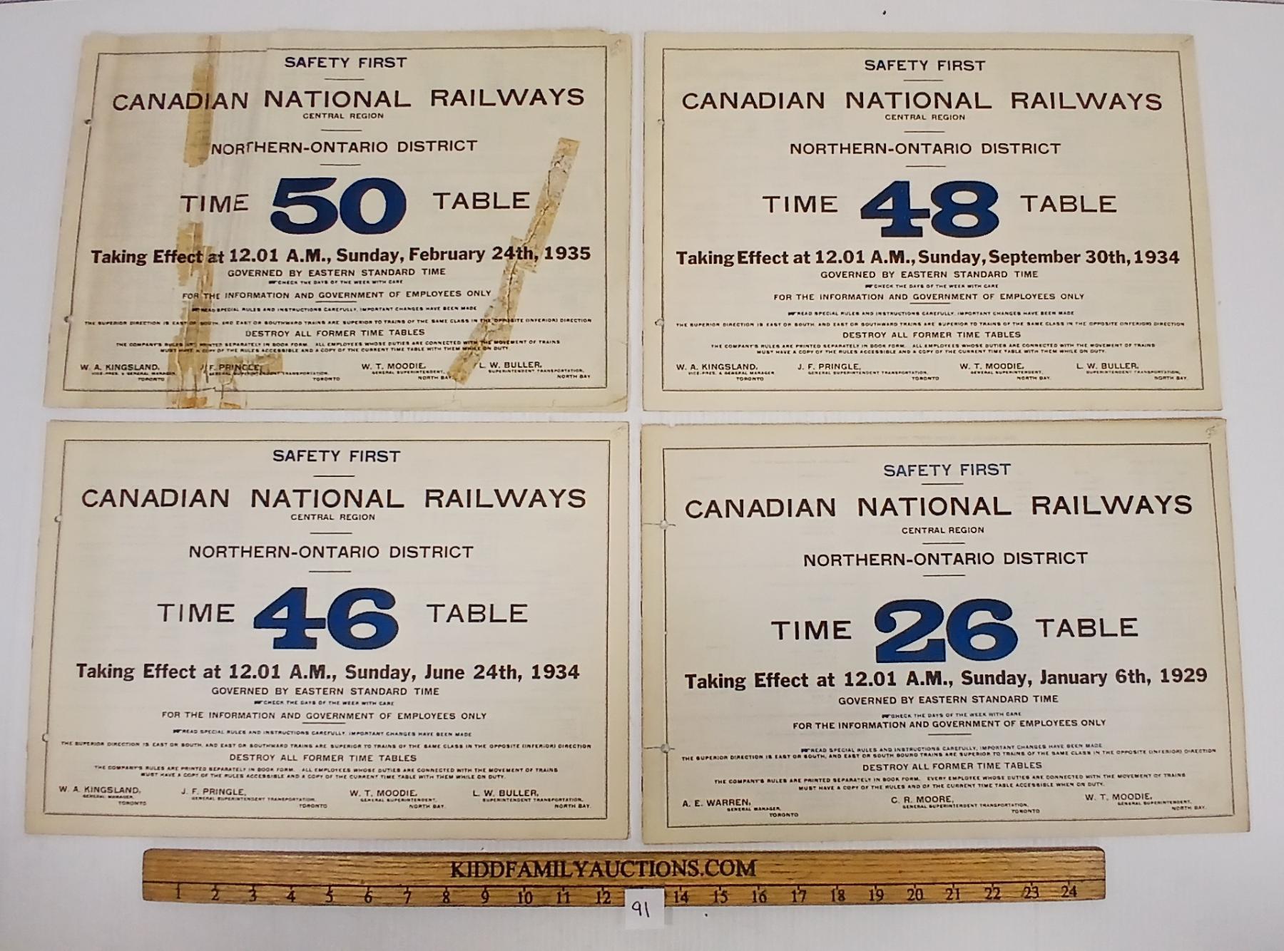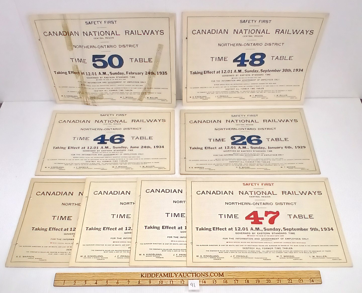 LOT OF 8 - CNR TIME TABLES - INCL 1927, 1929 & 1934, ETC