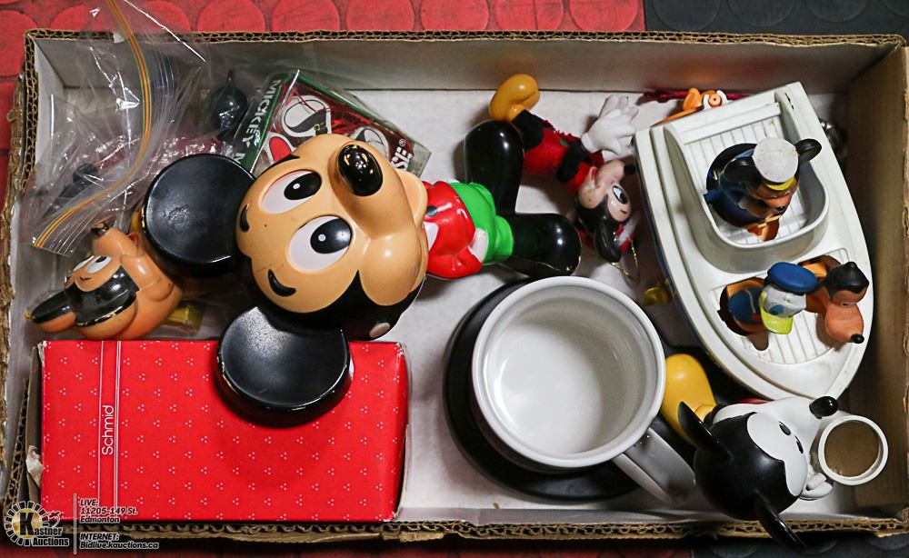 MOUSE TALKING FIGURE AND MICKEY, DONALD, PLUTO WIND-UP BOAT AND MORE