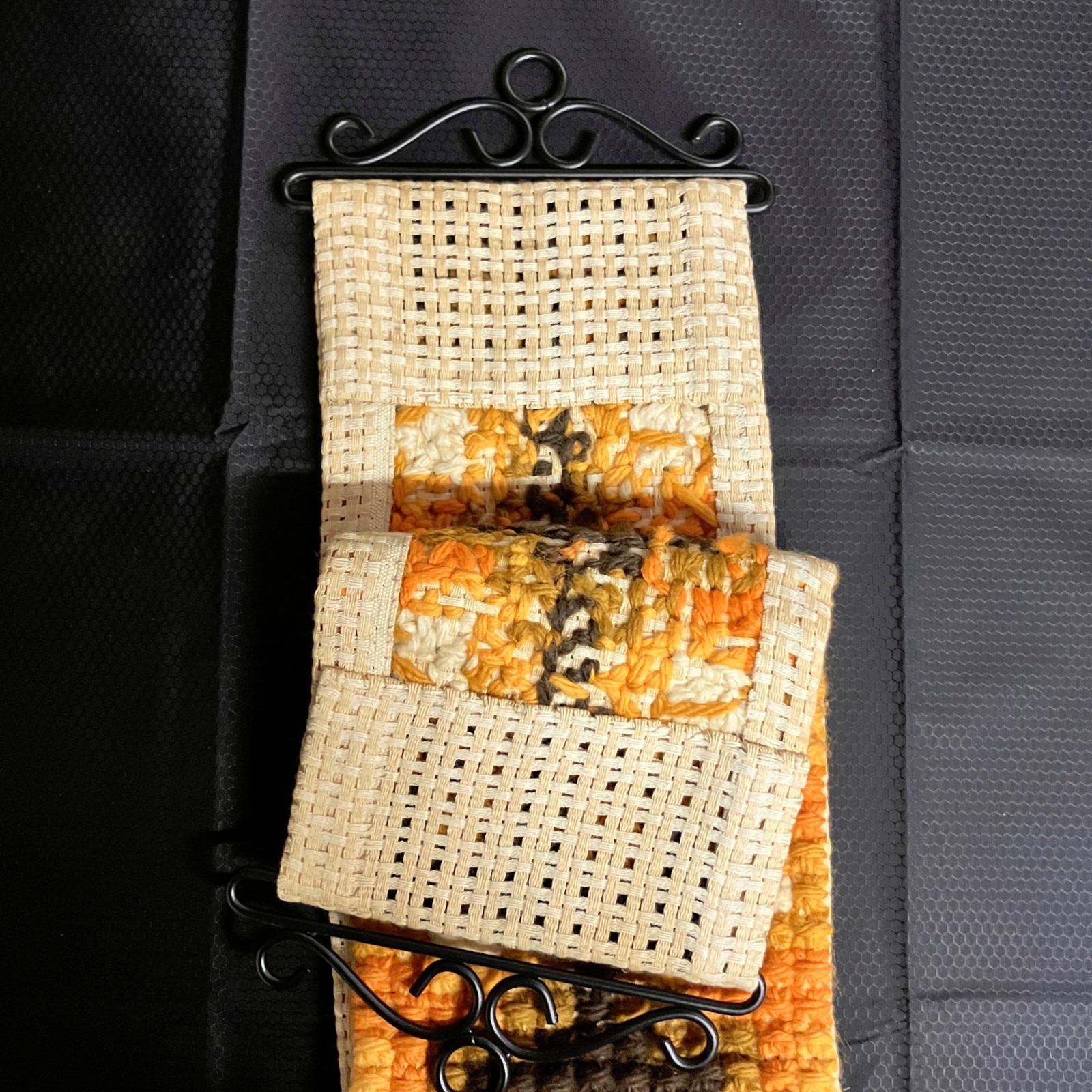2 made of cloth with metal hangers, 1 wood, 2 framed with glass - 21 x 17 in. largest frame.