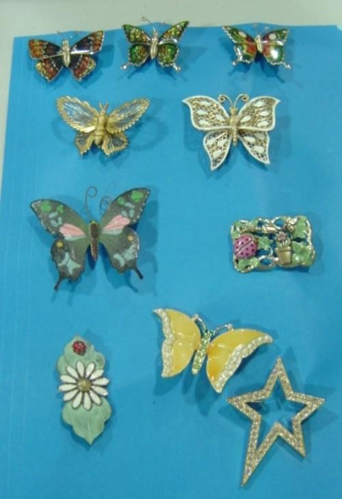 LOT OF 10 PINS 7-BUTTERFLIES 2-LADYBUGS 1-STAR SHAPES