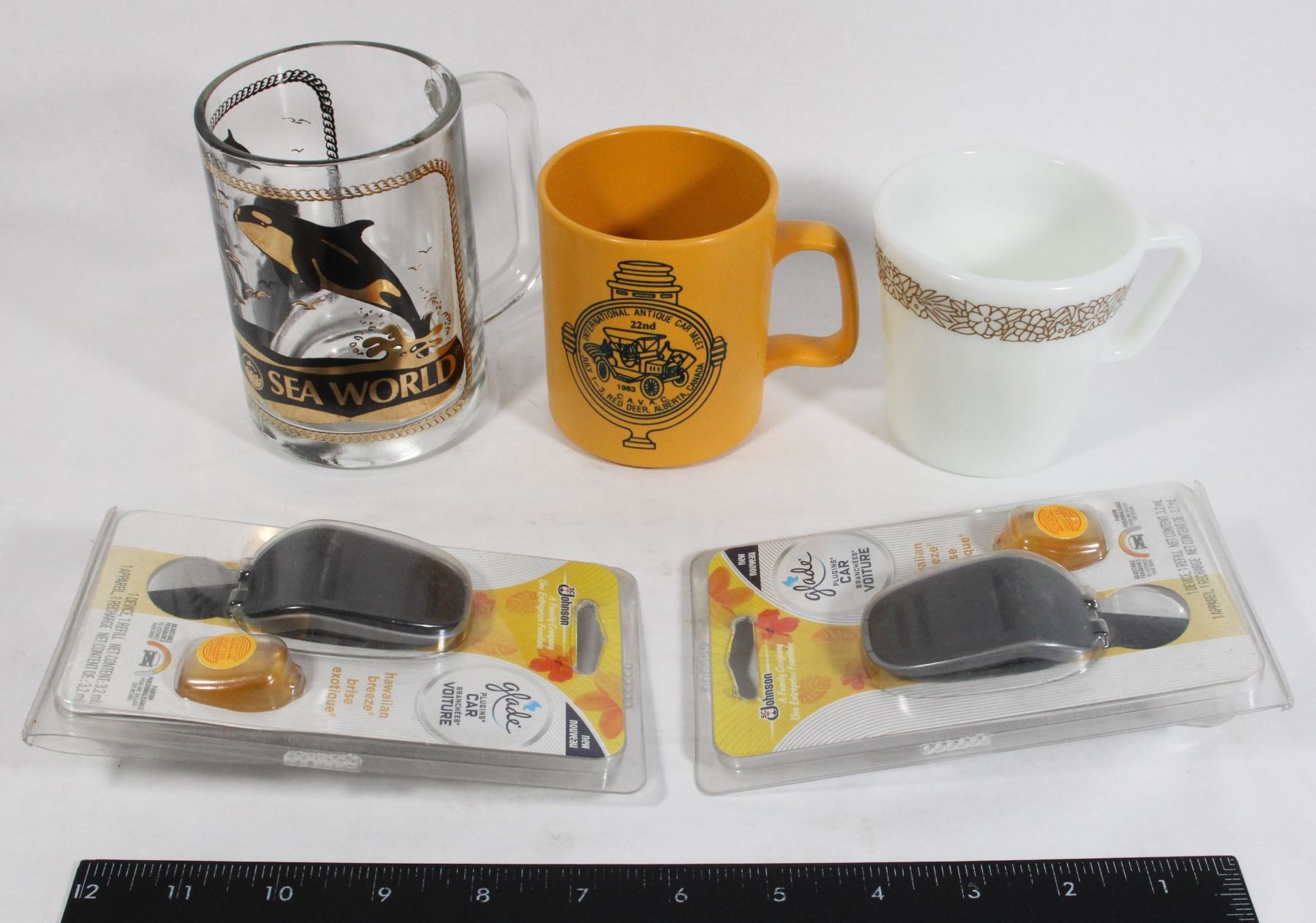 LOT OF VINTAGE DRINKWARE AND CAR AIR FRESHENERS