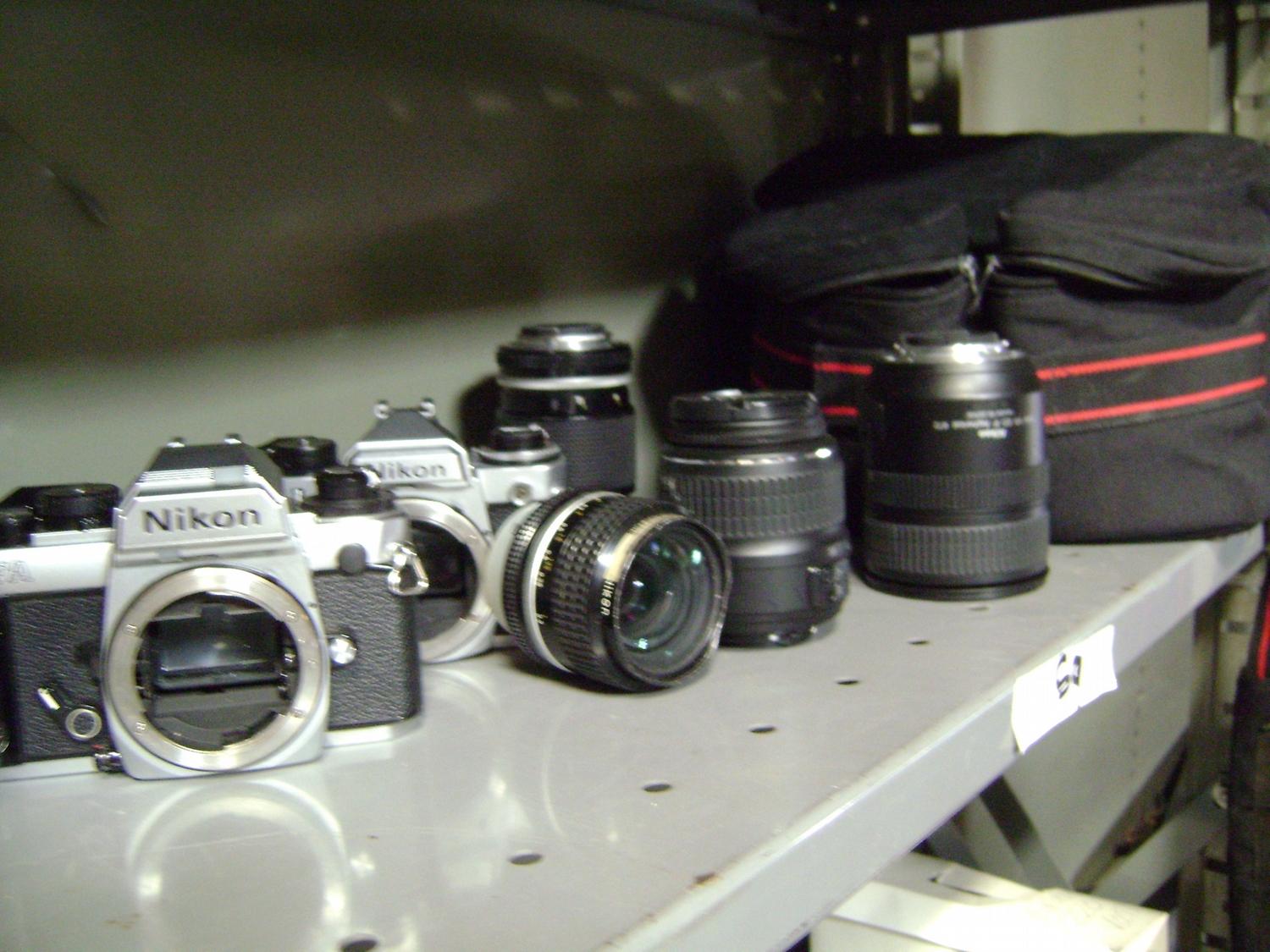 LOT- 2 NIKON BODIES FA AND FE2, NIKON AF -S DX 18-55 f 3.4 to 5.6, 35mm F2 ( bent filter ring ) Nikon AFS 24-120mm f 3.5 to 5.6 , - Nikon non AF 43 to 86 f3.5