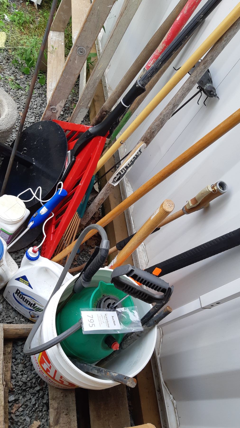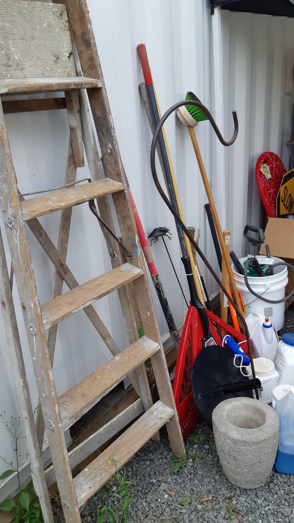 Includes flower fertilizers, rakes, sprayer, 6' wood ladder, more. Pick up 9-10