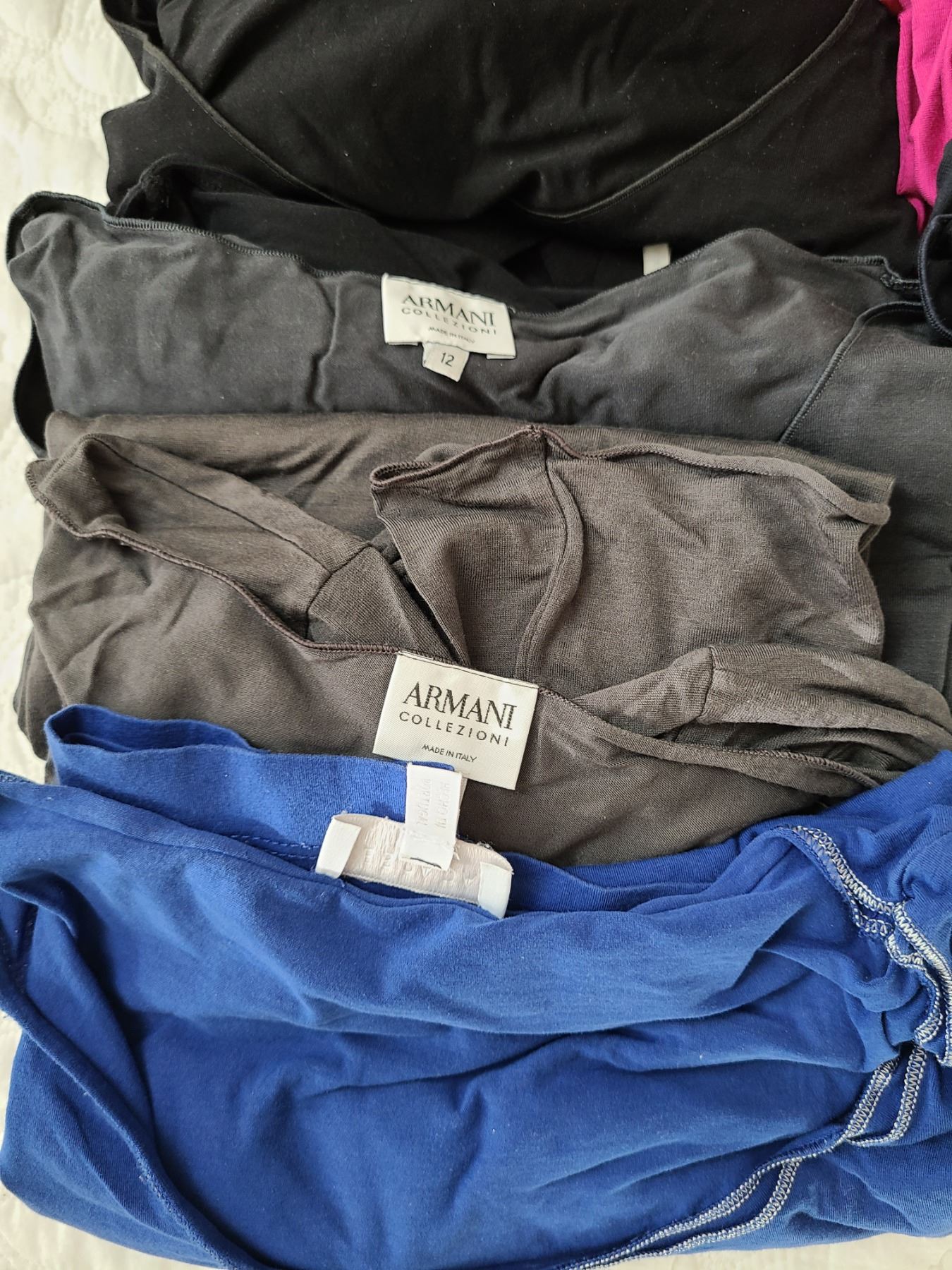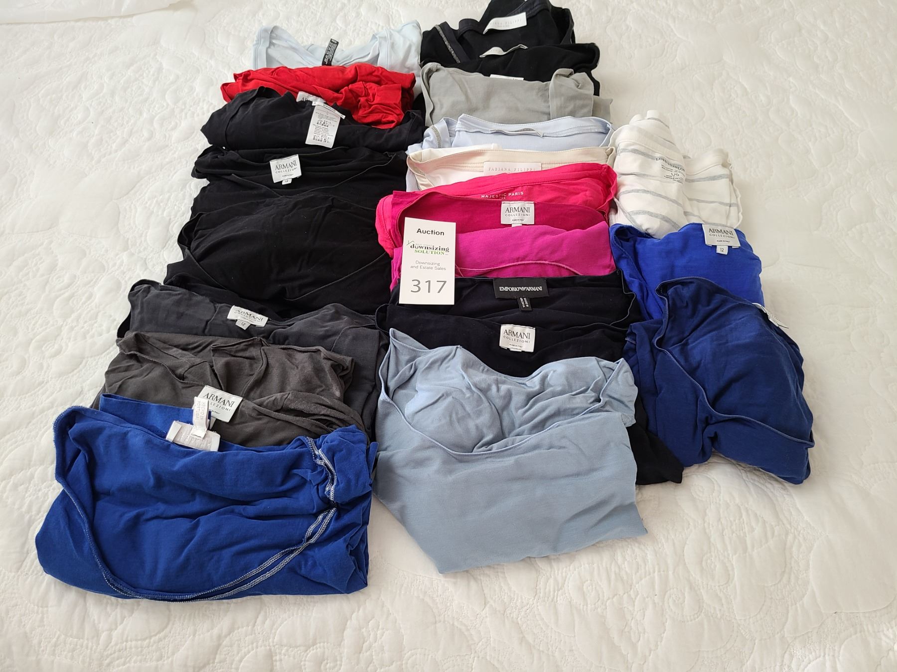 T-shirts by Fabiano, Akris, Armani, and more, 26 pieces, size 12. Pickup at 10am.