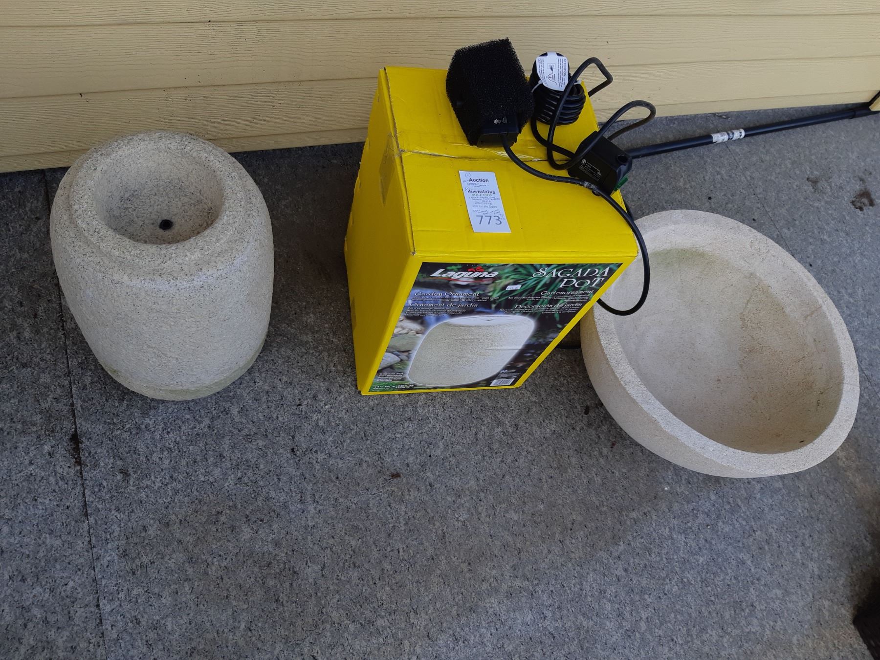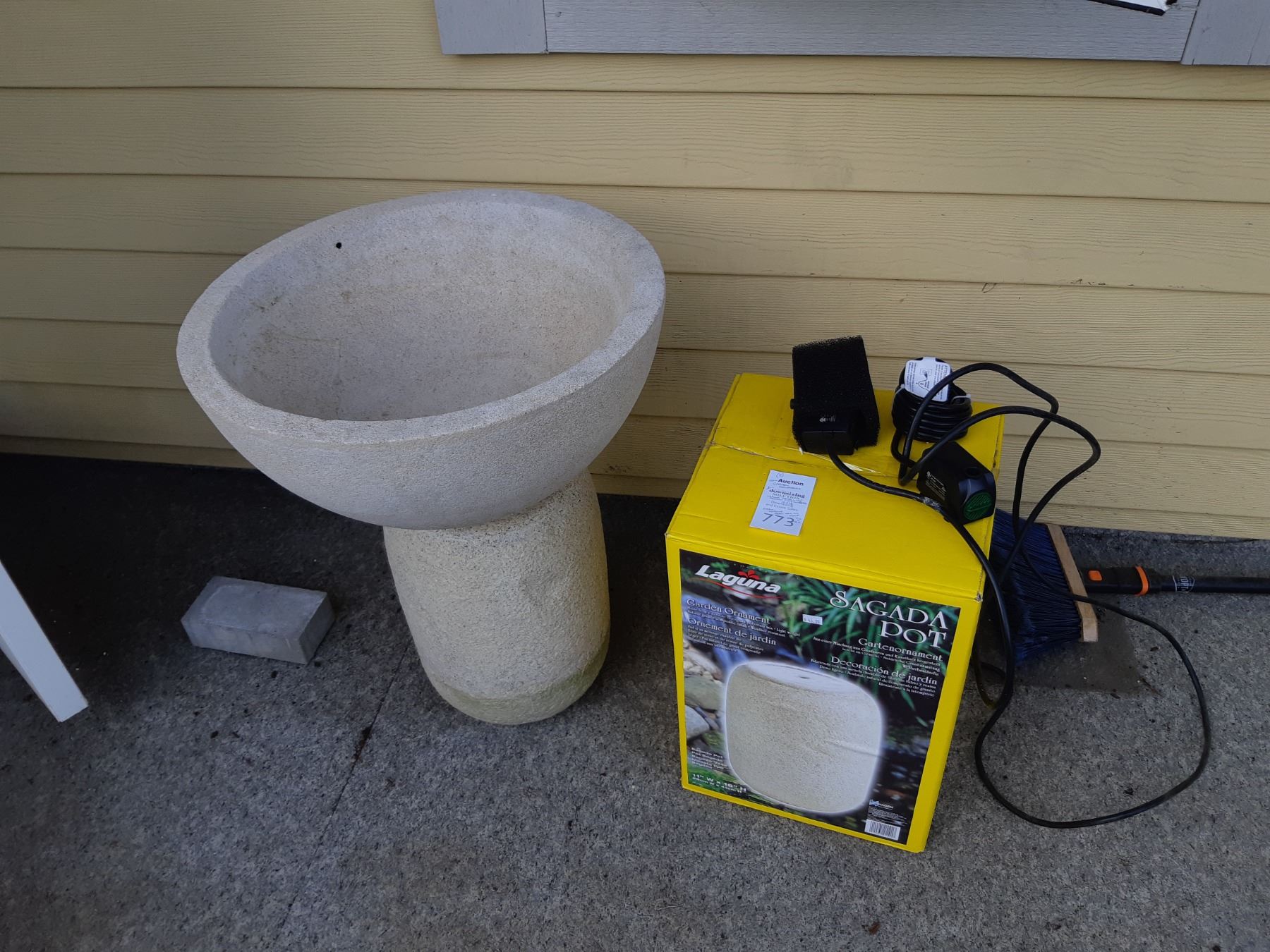Garden ornament 11x16, pond/dish of fibreglass pump is untested