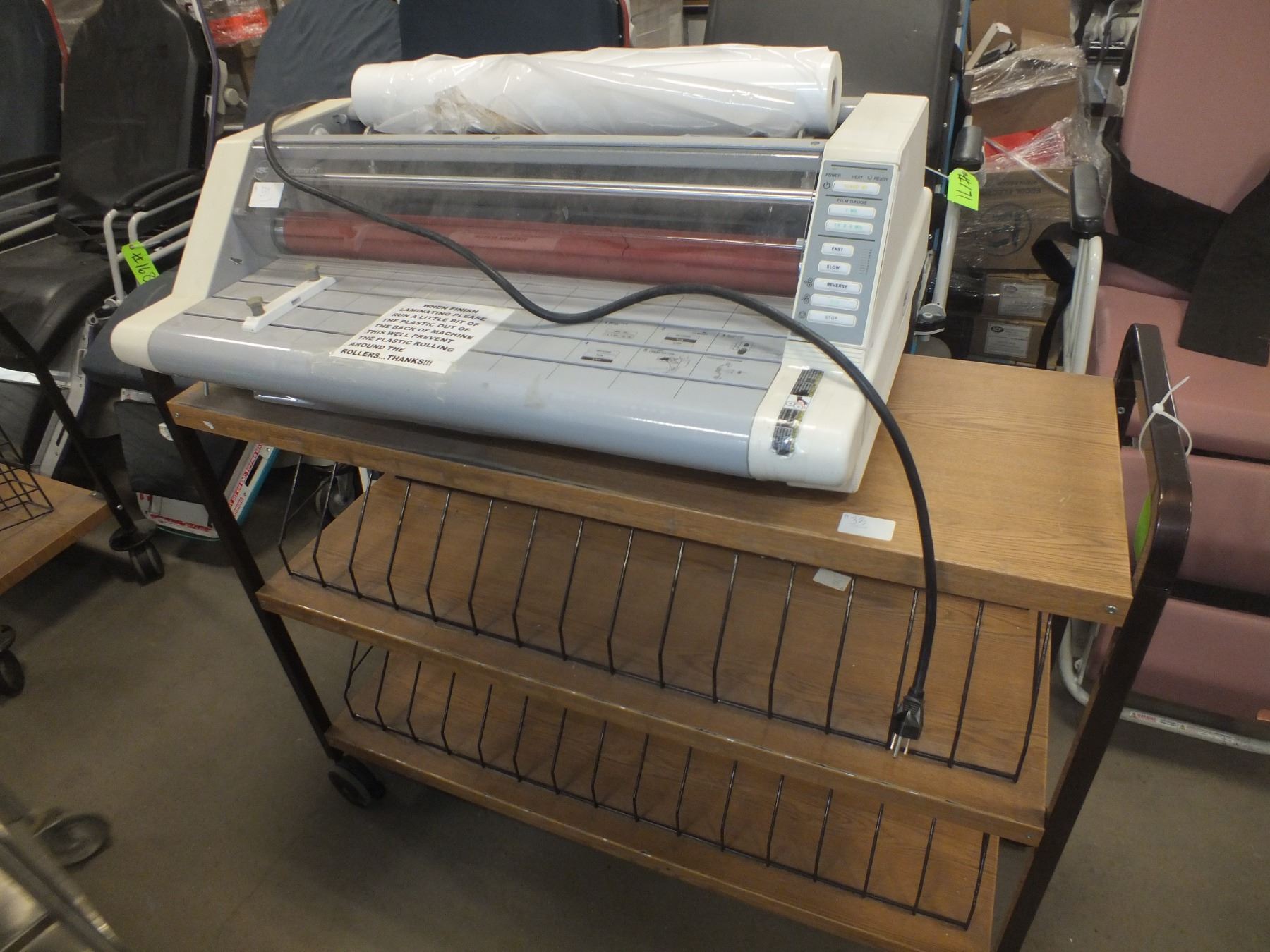 Laminator & Brown Cart On Wheels, laminator lights up...used