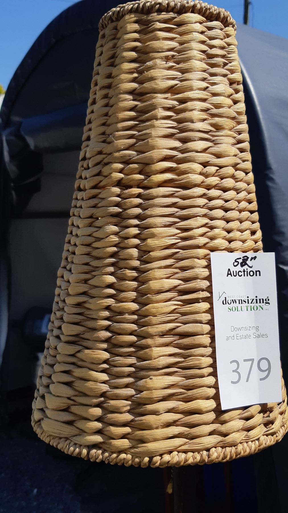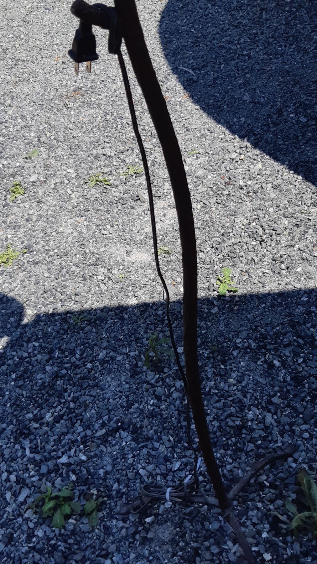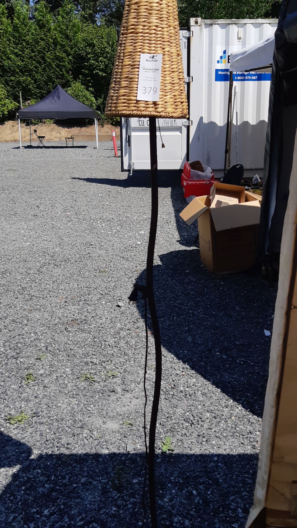Floor lamp with wicker shade,metal base with twisted branch theme. Pickup at 11 am