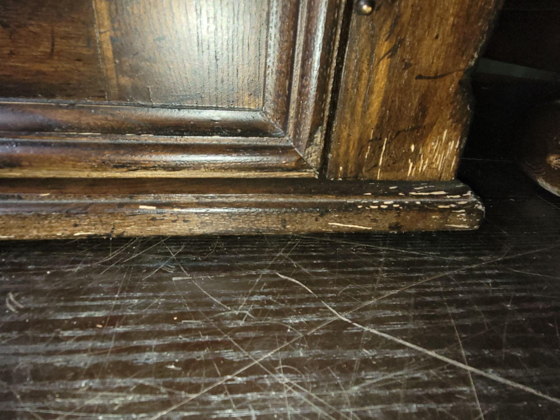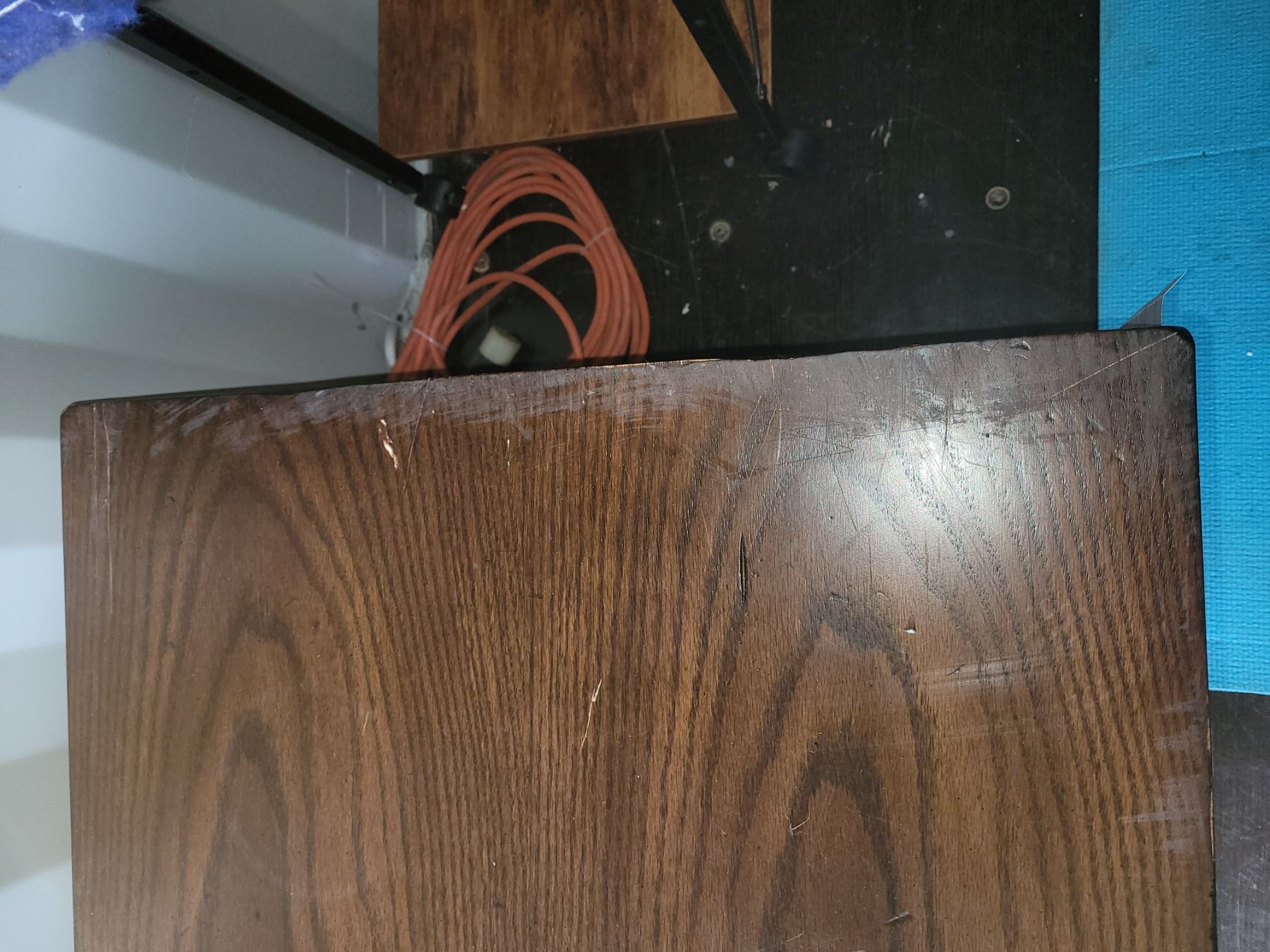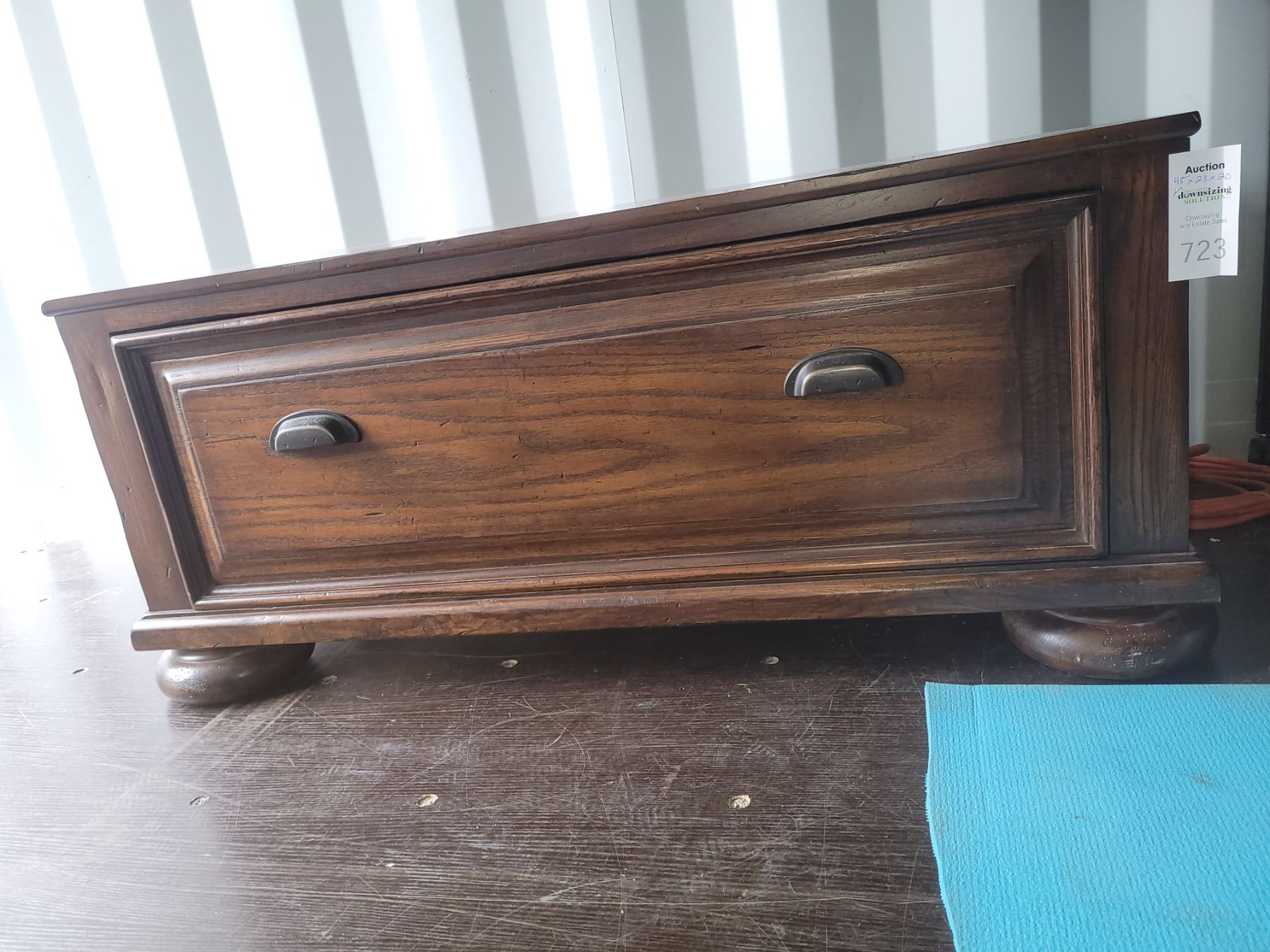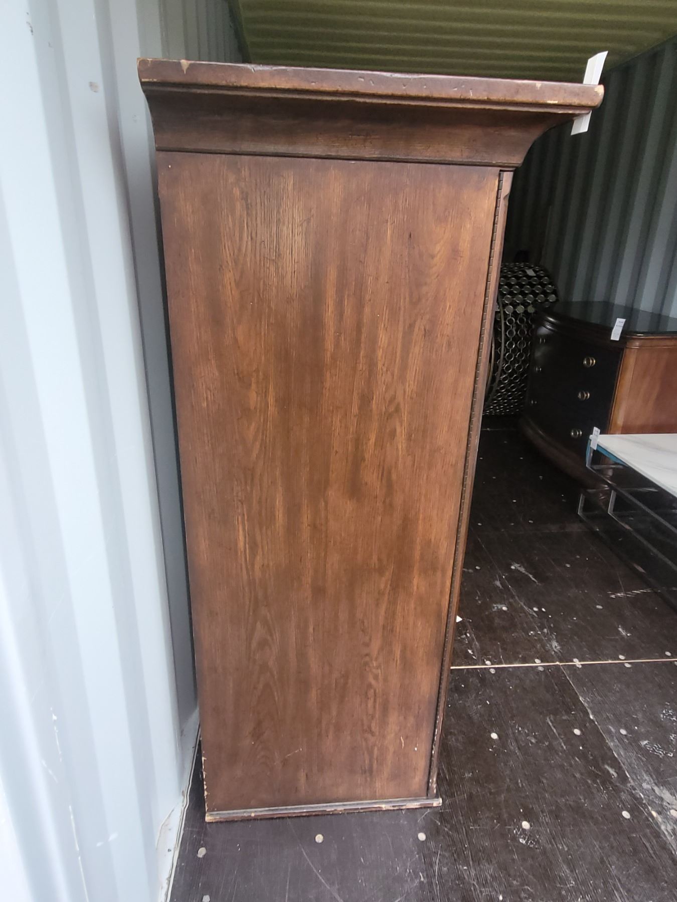 51x26x62 Wardrobe one door needs small repair, wardrobe sits on top of heavy drawer, (drawer is shown separately in images). 45x23x20. Total height of wardrobe on top of drawer is 84" note scratches Pickup 11 am