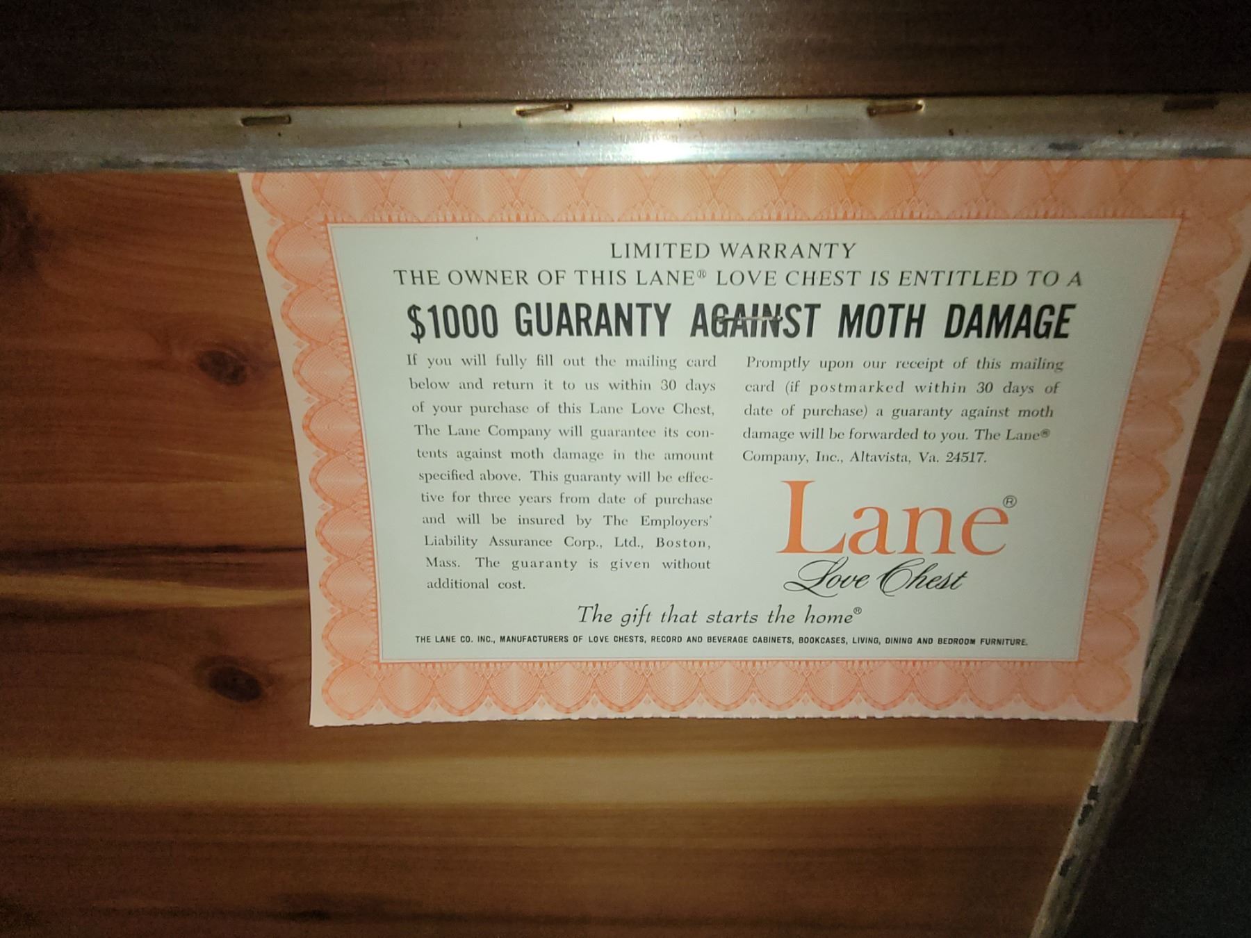 Lane Knechtel cedar chest 44x18x23 bring help to load, pickup 10 am