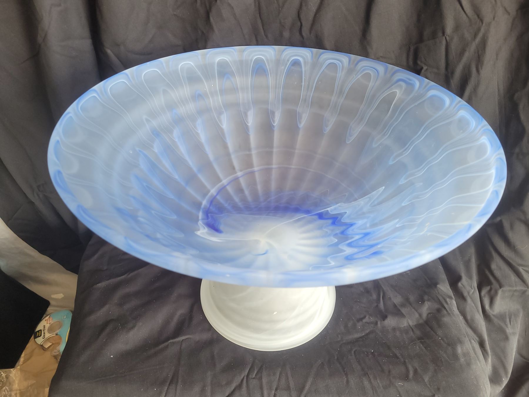 Large glass footed bowl 16x16x10 Pickup at 9 am