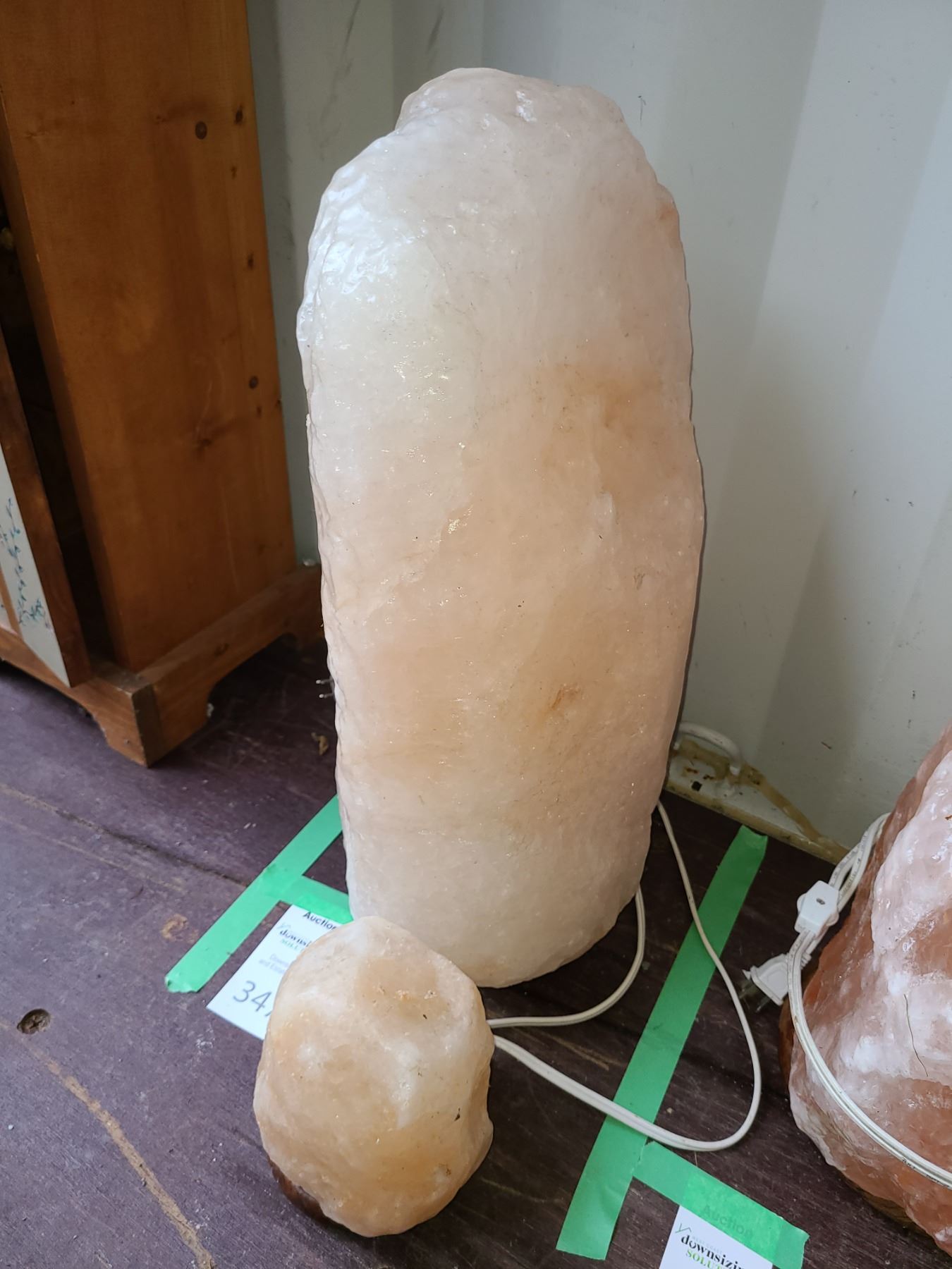 Large Himalayan salt crystal lamp about 20 inches tall, very heavy and one smaller salt crystal. Pick up at 9 am