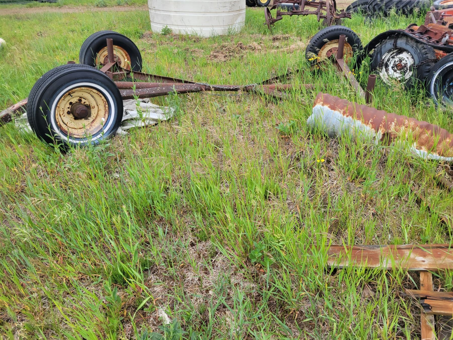 Large Qty of scrap metal, tires on rims, trailer, barrels, track machine etc. Buyer to load out.