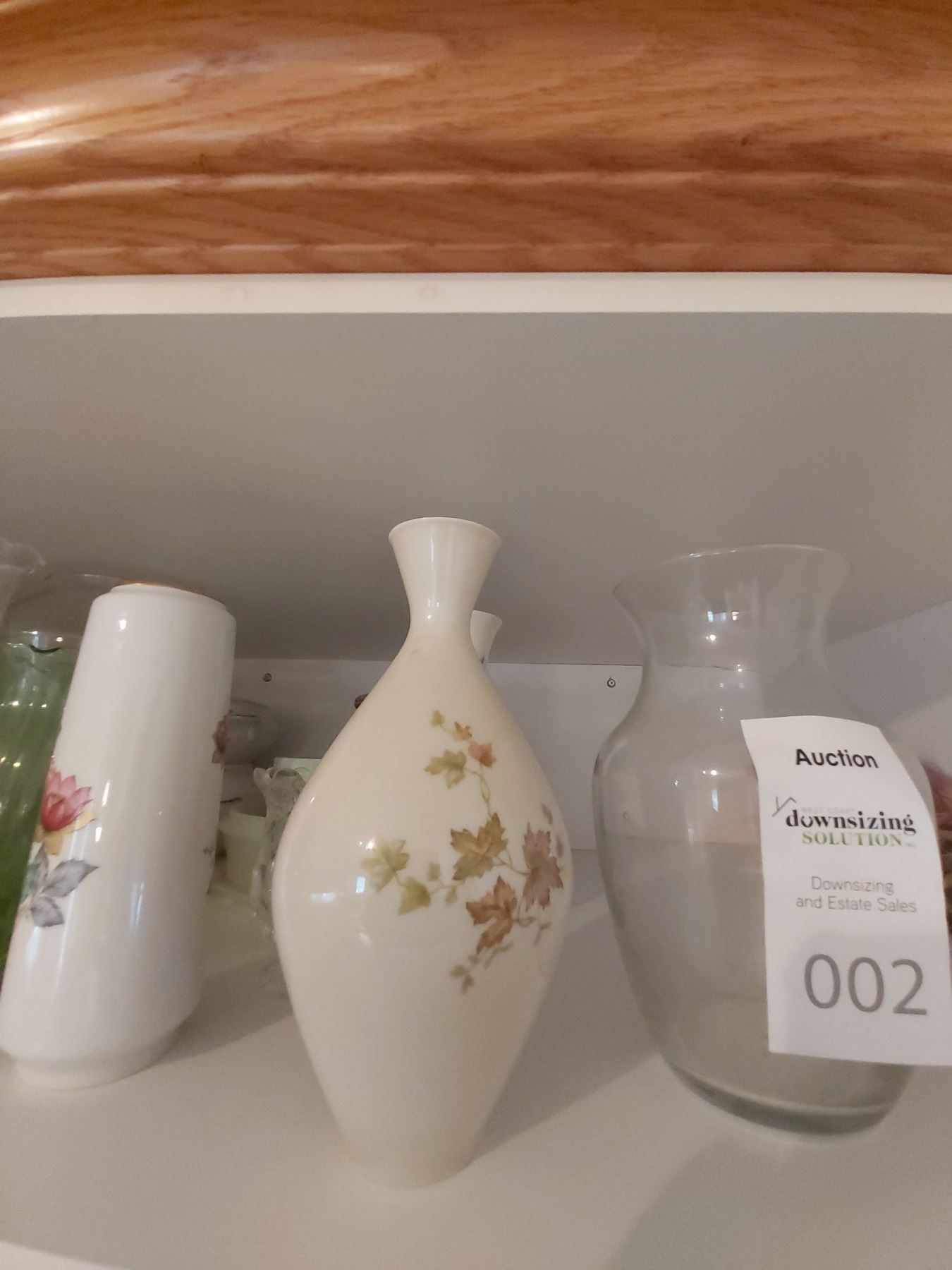 Large assortment of vases, largest 12”, bring packing material. Pickup 9 am