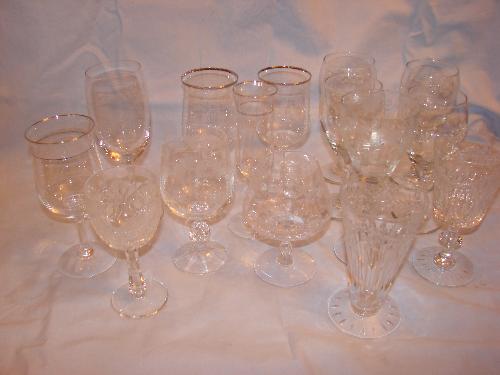 Larege lot of etched stemware, apprx. 15 stems,some are depression, varies styles and shapes