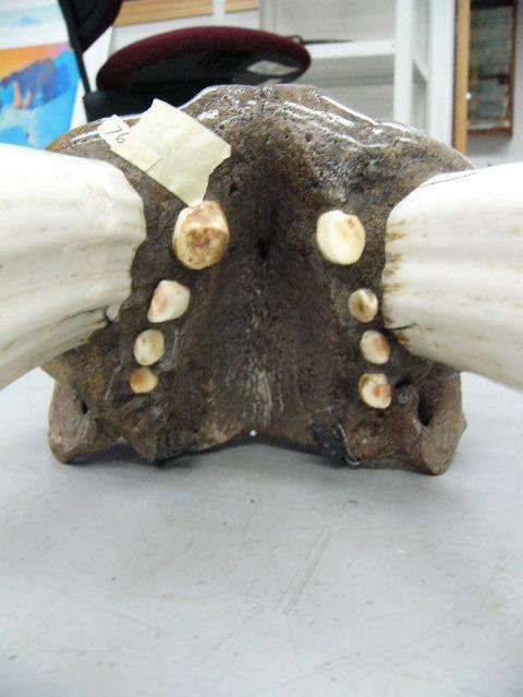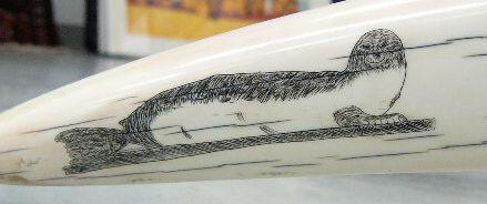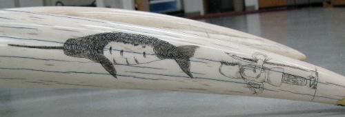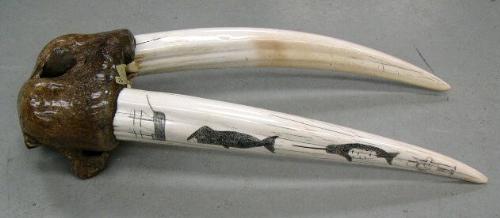 Large male headmount with narwhale, walrus scrimshaw 26" (100)
