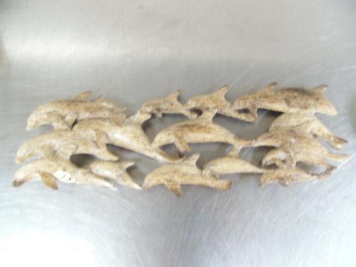 Large pod of swimming whales- approx. 17 whales- carved out of bone- imported, not Alaskan ()