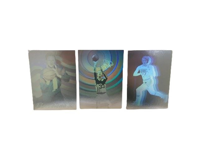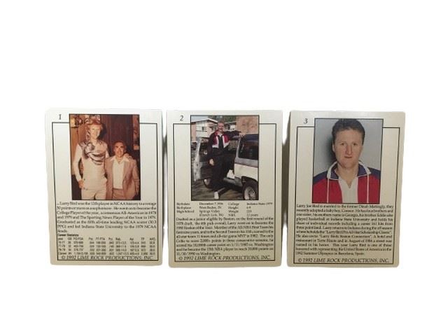 Each card features a holographic foil action image of Larry Joe Bird on the front, with stats and trivia on the reverse.