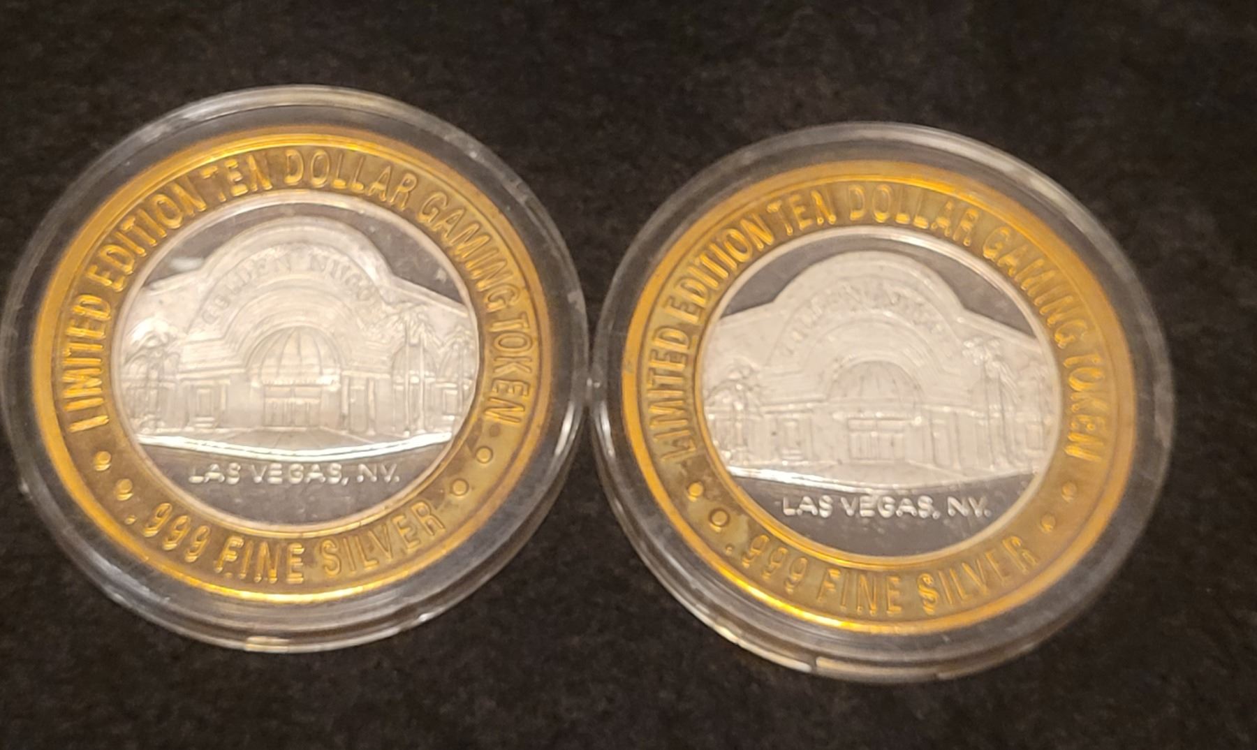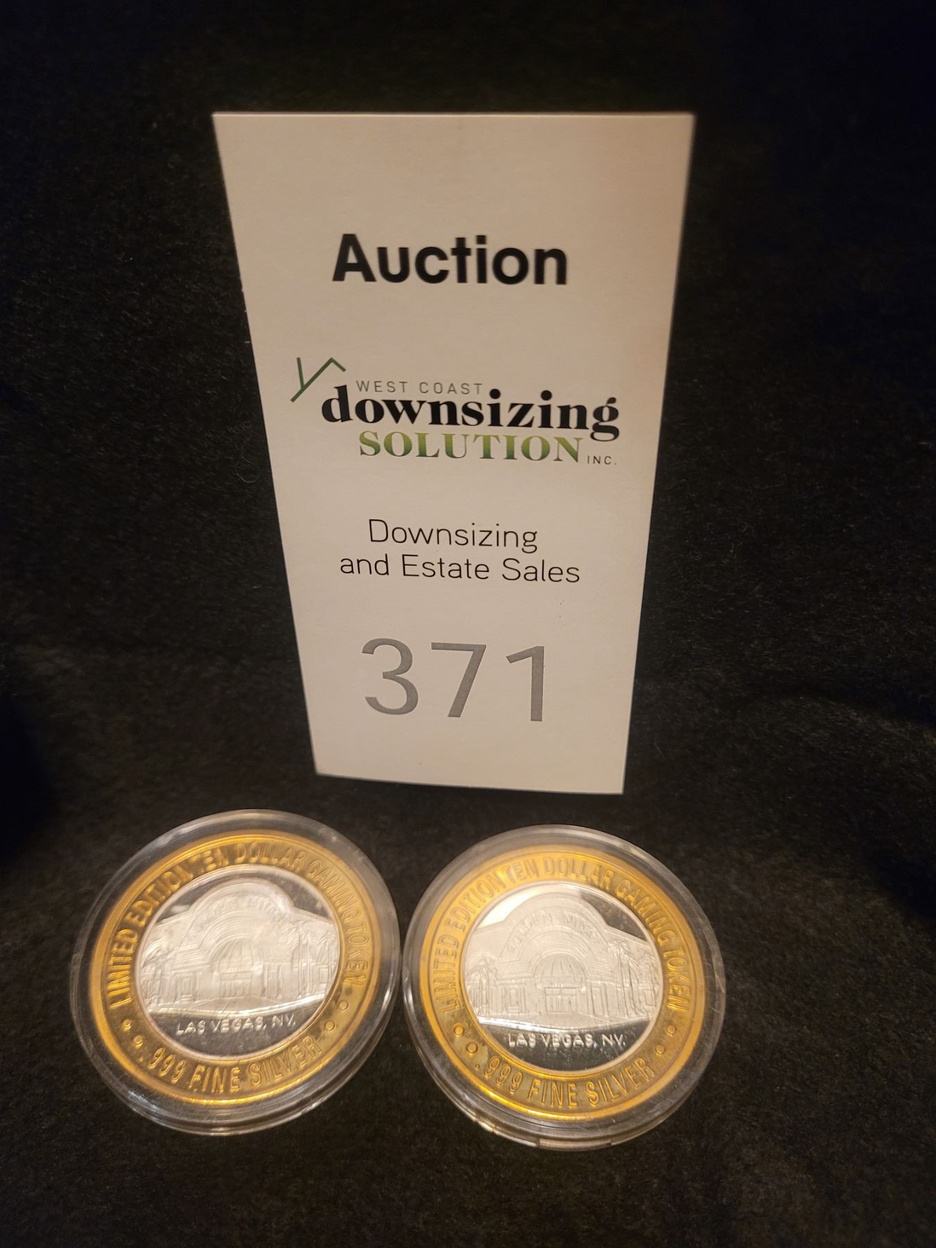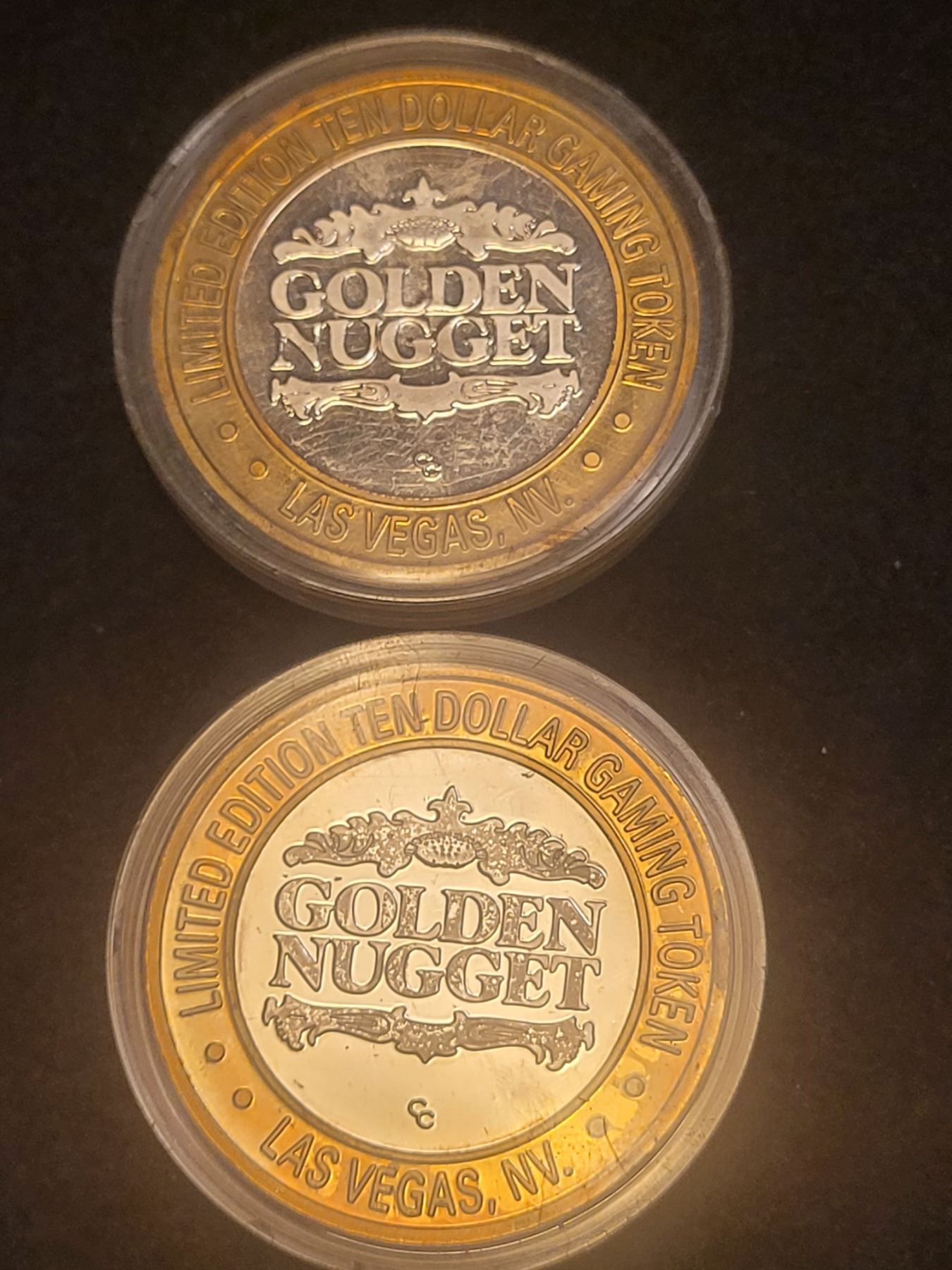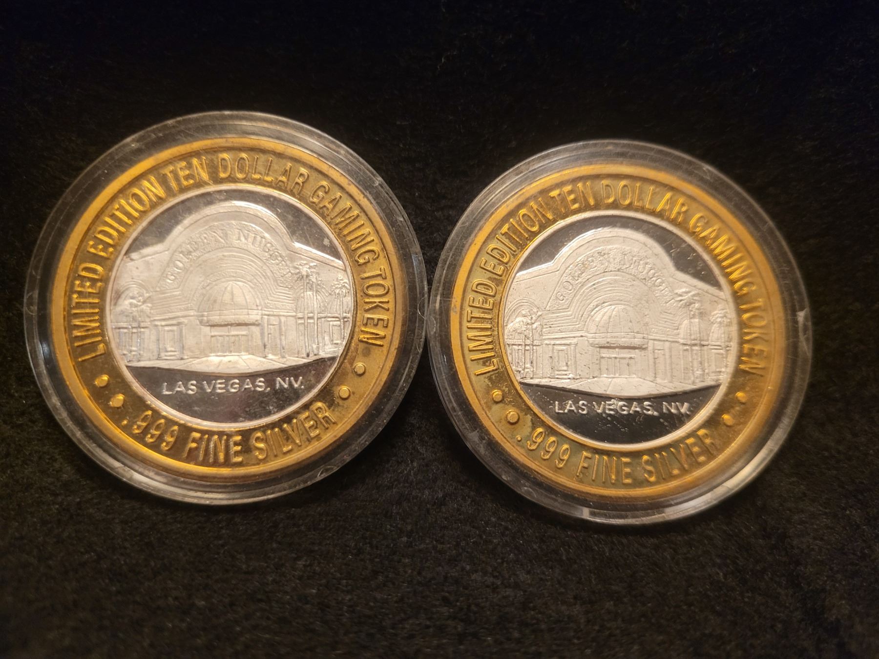 2 x Golden Nugget Las Vegas Nevada $10 gaming tokens .999 fine silver. Puckup at 9 am