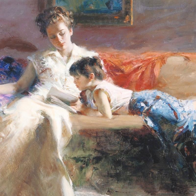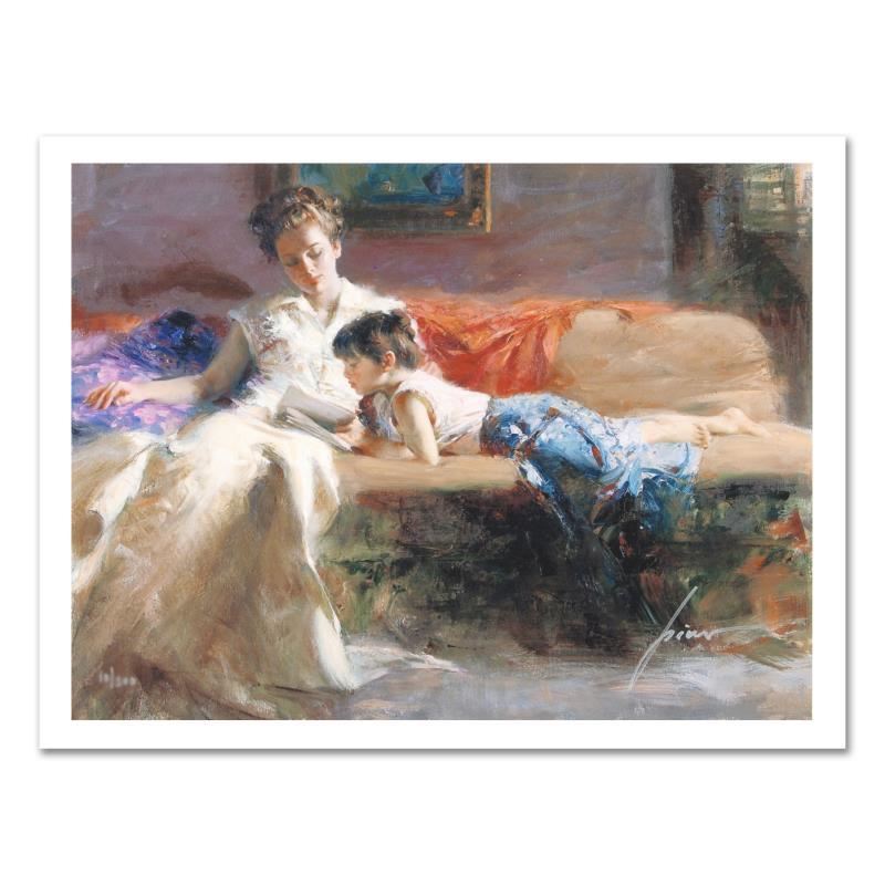 "Late Night Reading" is a limited edition giclee on paper by Pino (1939-2010). The piece comes numbered and is hand signed by the artist. Includes Certificate of Authenticity. Measures approximately 15 x 20" (image).