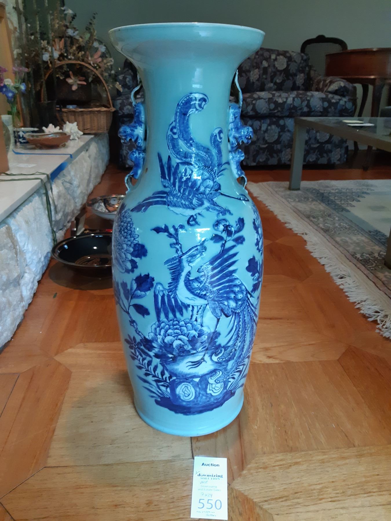 Blue & White Qing Vase 9x24 Estimated value by Maynards $600.00 - $800.00 pair Estimated value $300.00 - $400.00 each. Matches lot 548 Authenticity suspect as there is no marking on the bottom of the vases.Pickup at 11 am