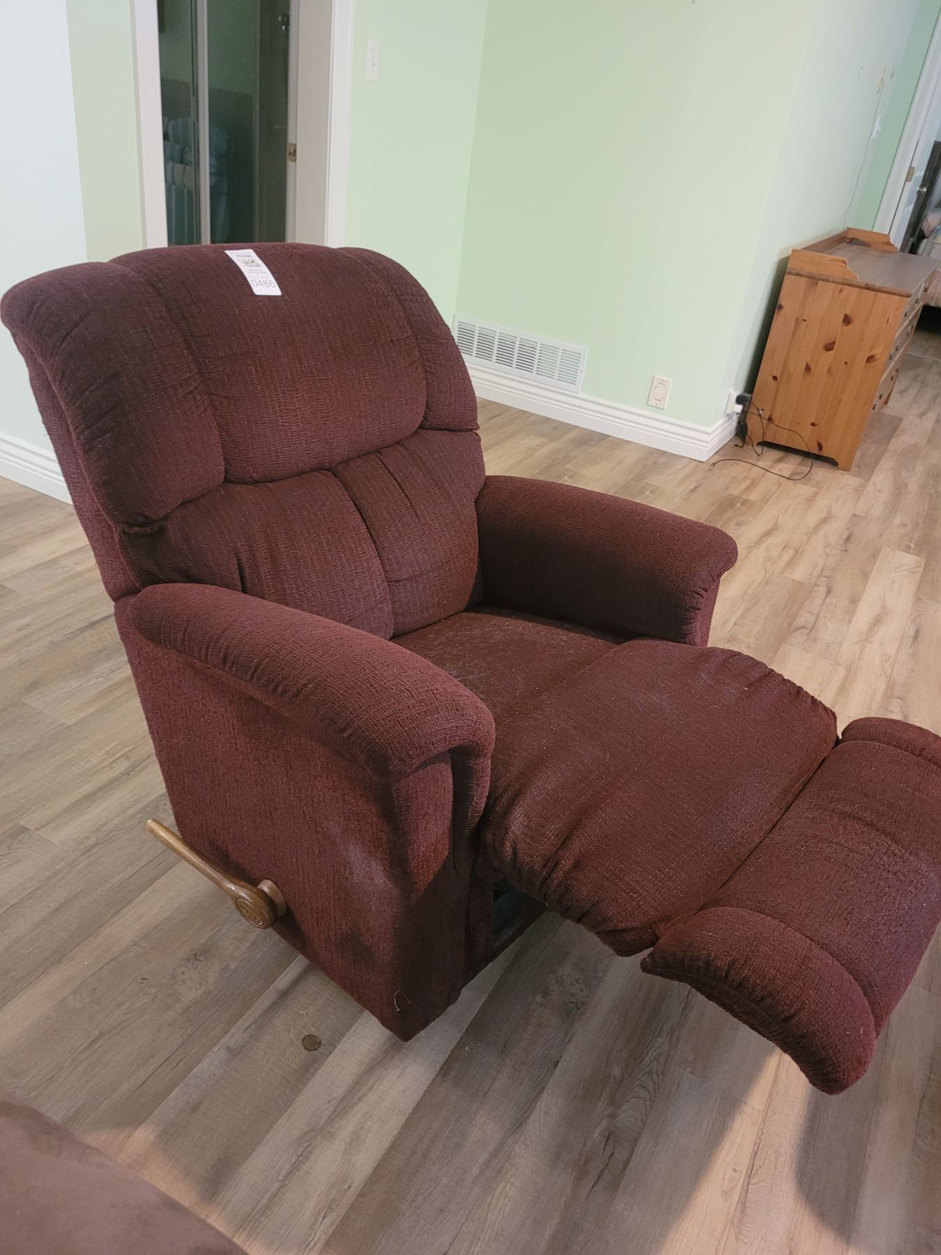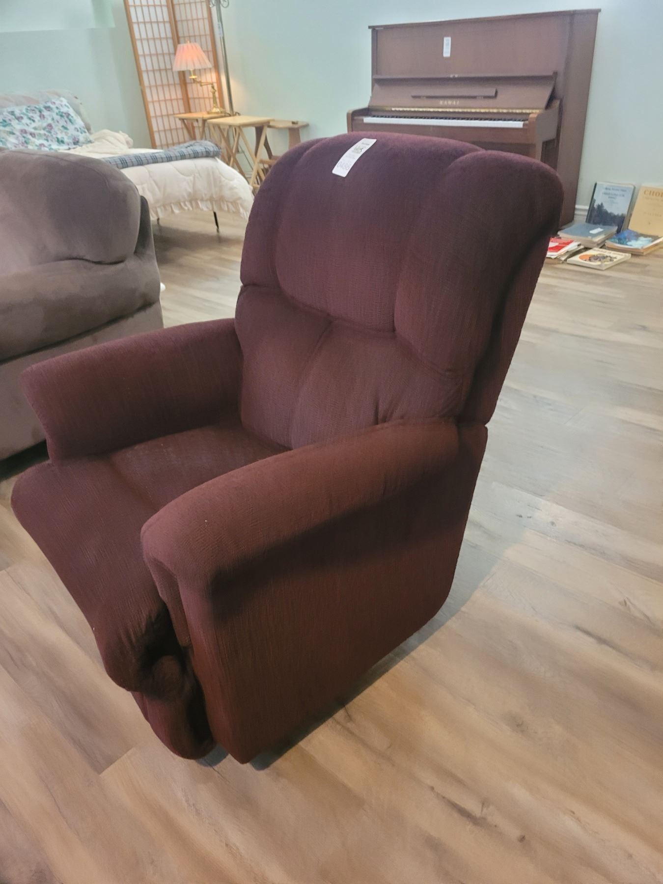 Maroon recliner. 35x30x40 Pickup at 11 am