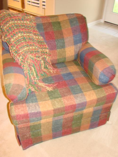 Lazyboy stuffed chair includes throw. Excellent cond. Non Smoking home.