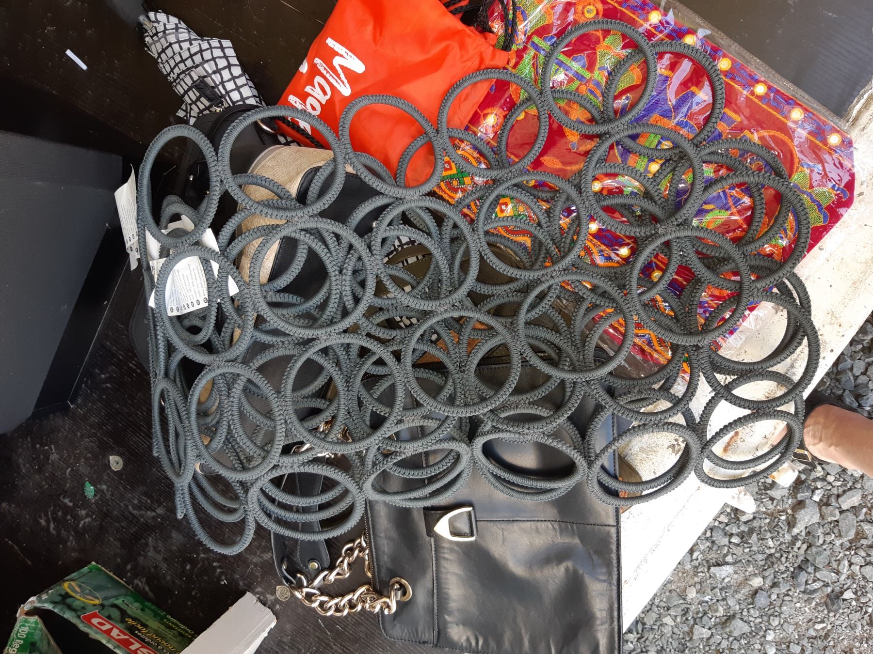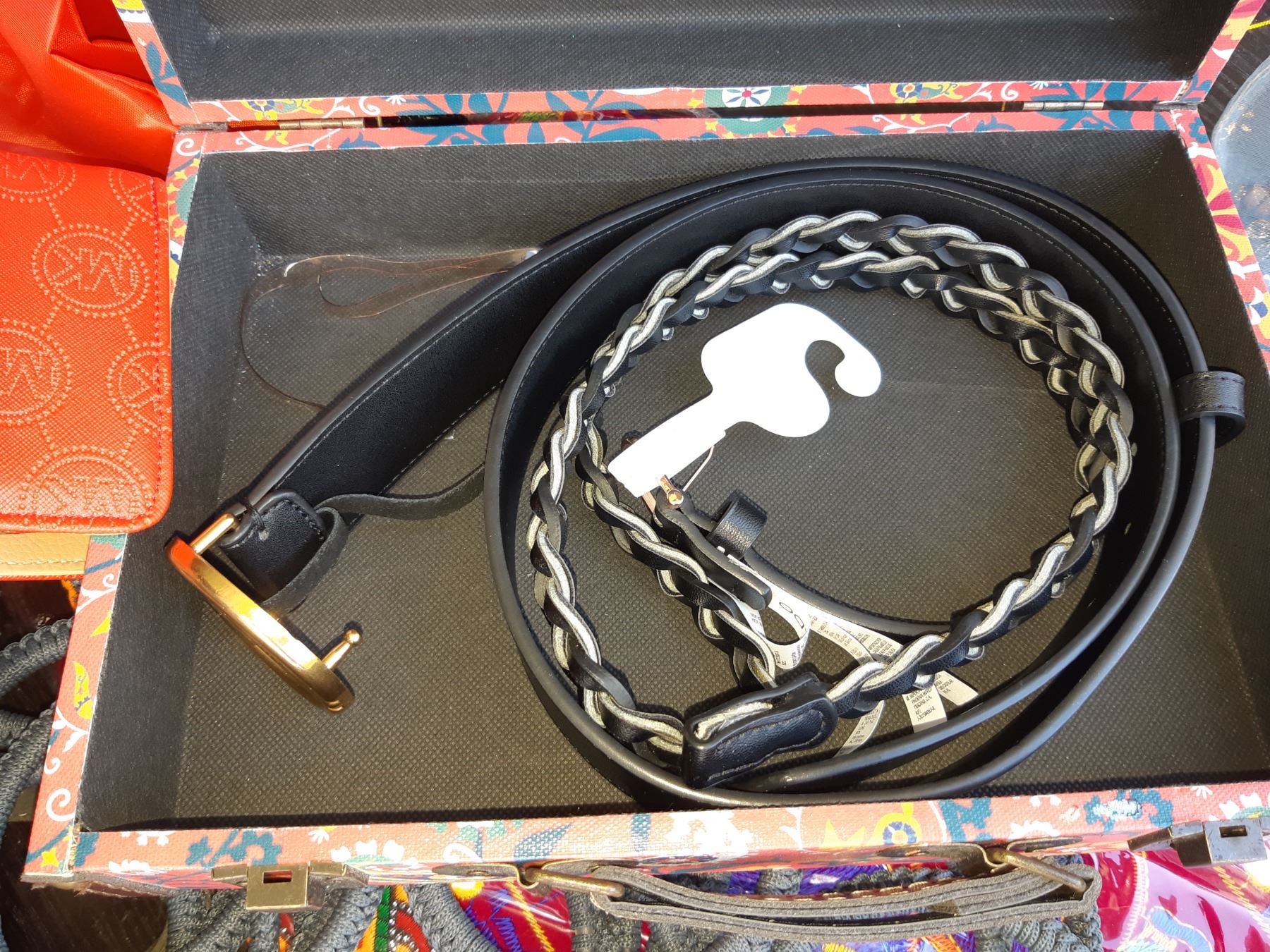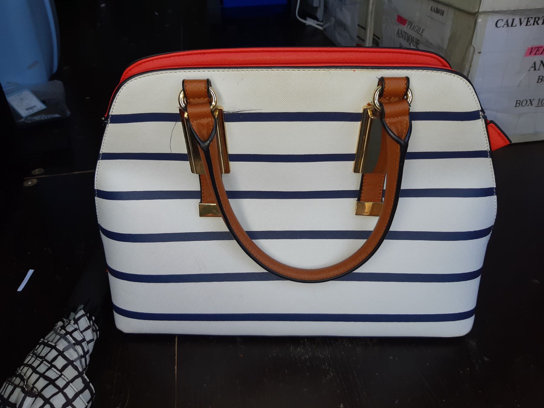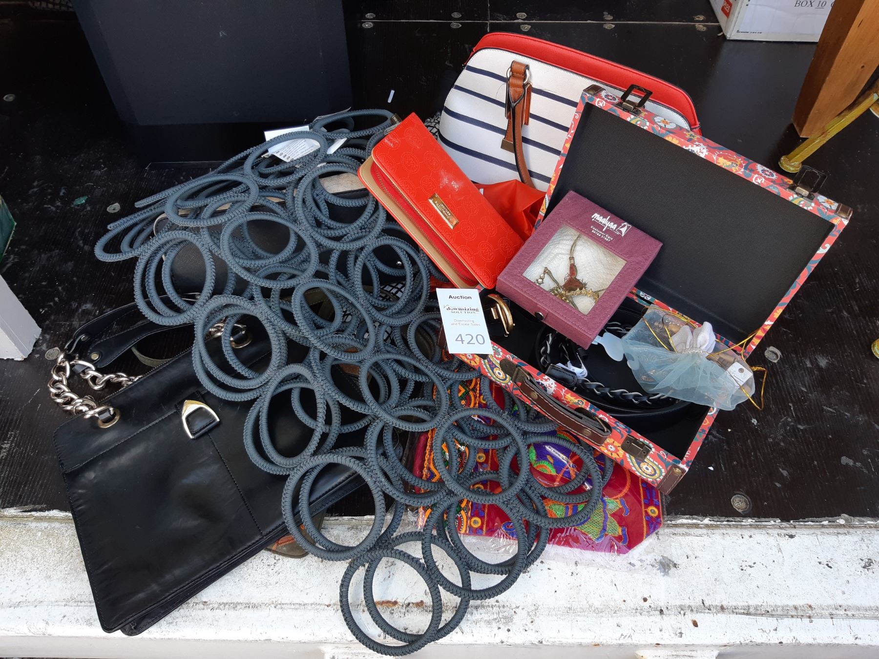 Black Leather Hidesign Handbag, Cors purse, David Jones handbag, Aldo handbag, costume jewelry and Scraf Hangers. Pickup at 10 am