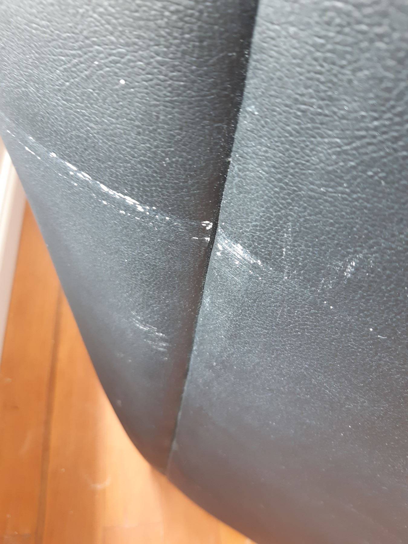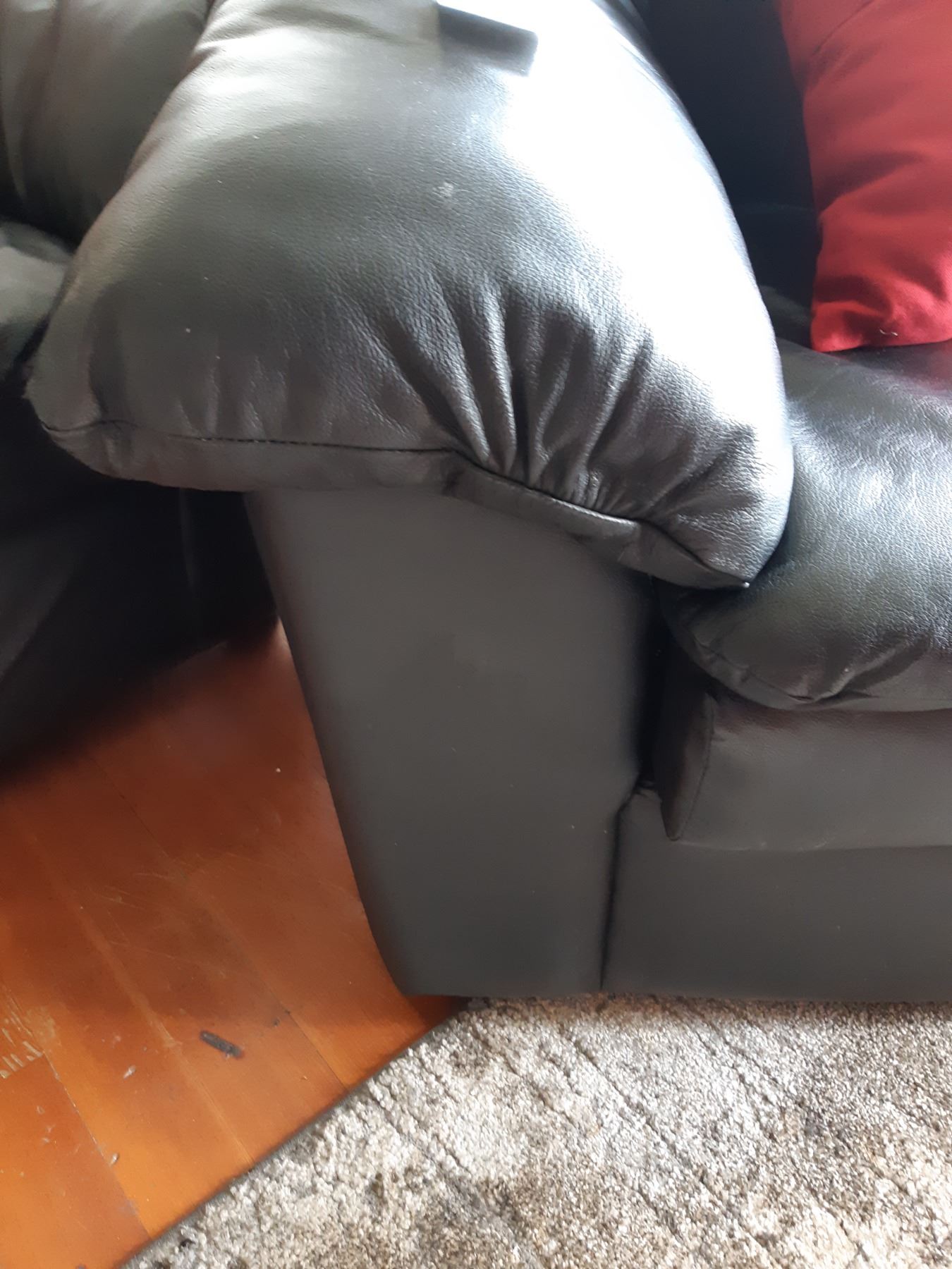 Loveseat, leather, with cushions, 69x37x37. Very heavy, bring help to move downstairs. Pickup at 11 am.
