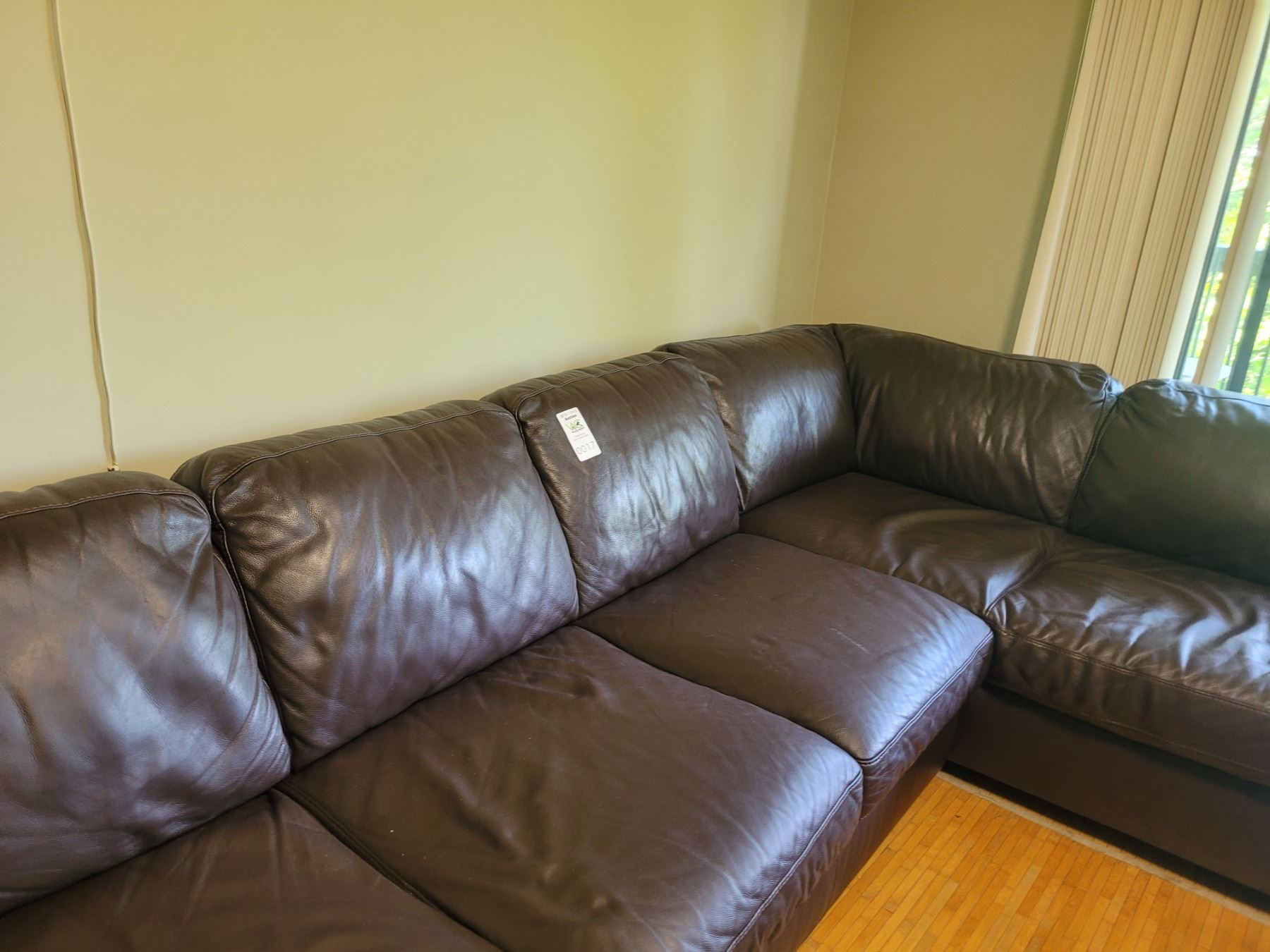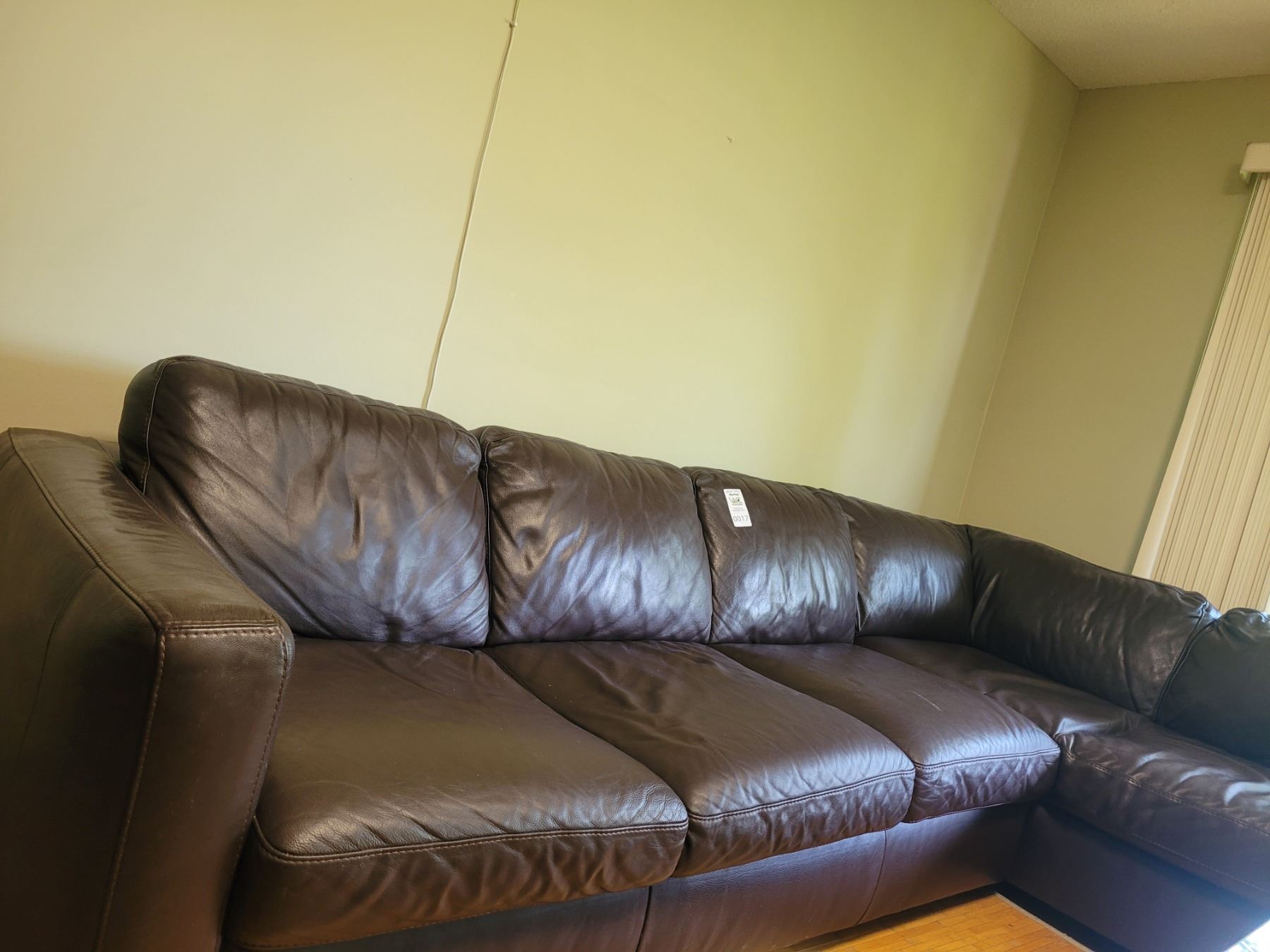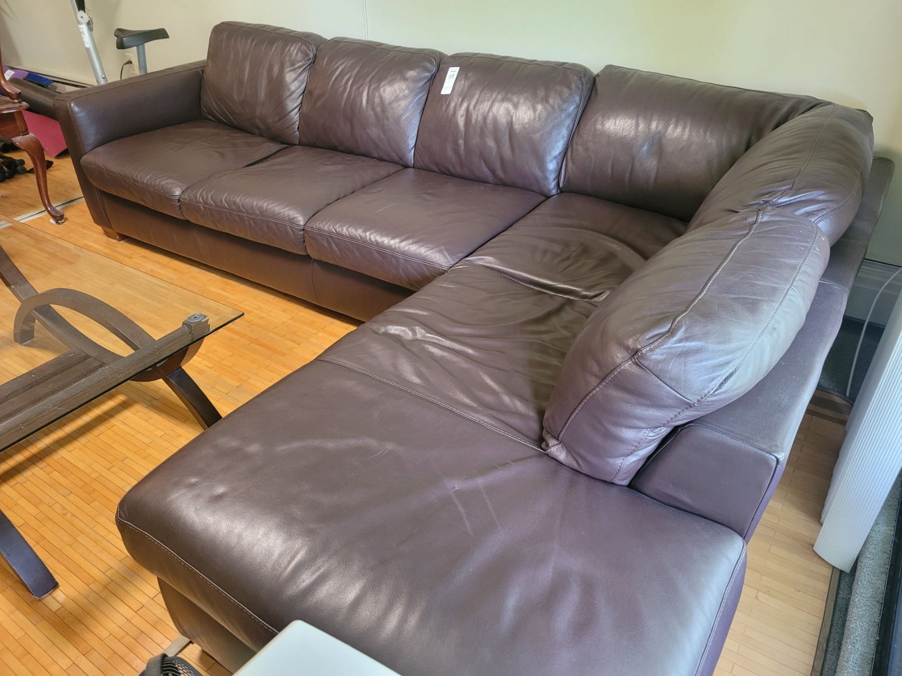 Dark brown leather sectional, 2 pieces, 120x38x31, in tact no rips or damage.. Pick up 11-12