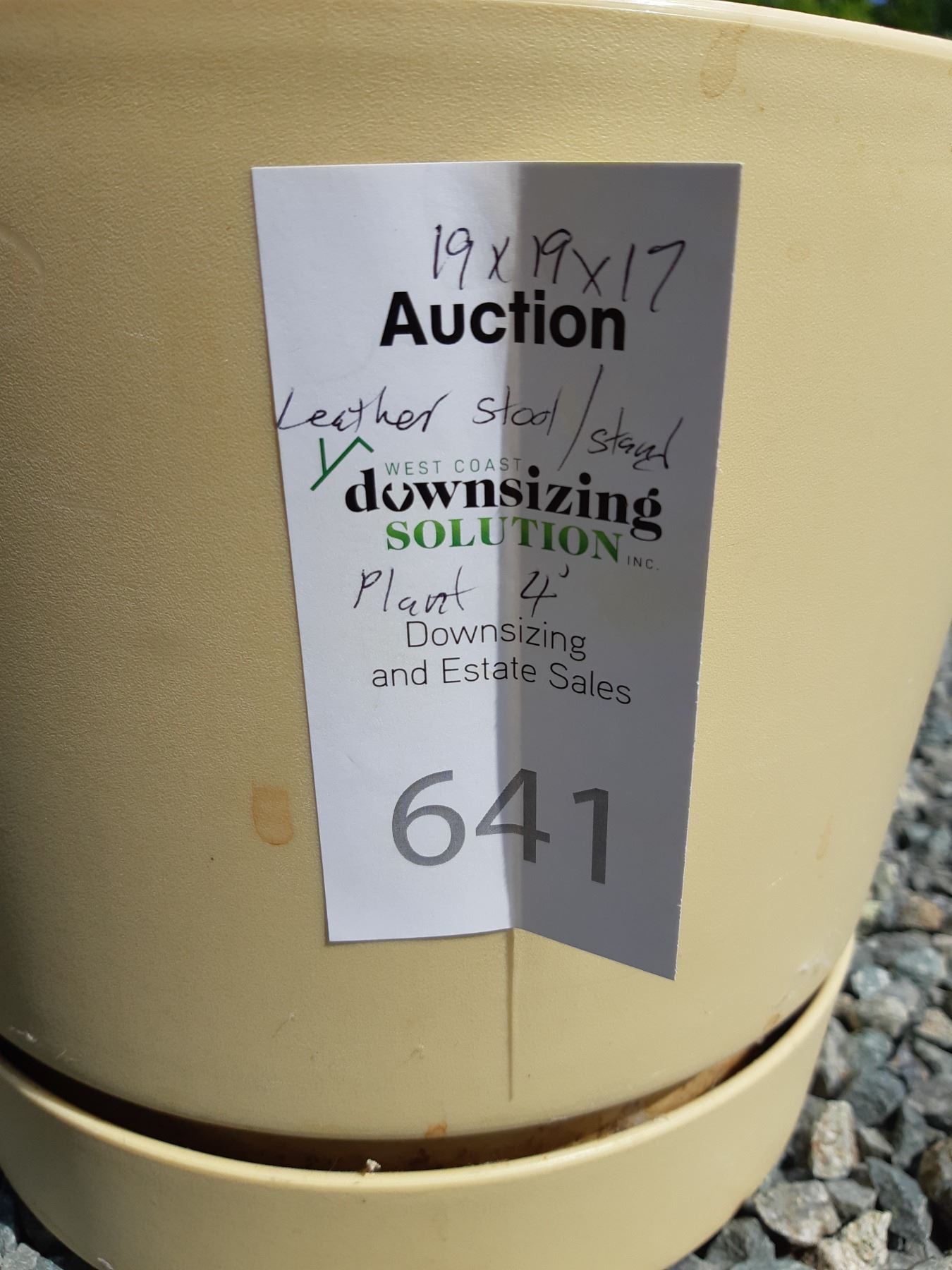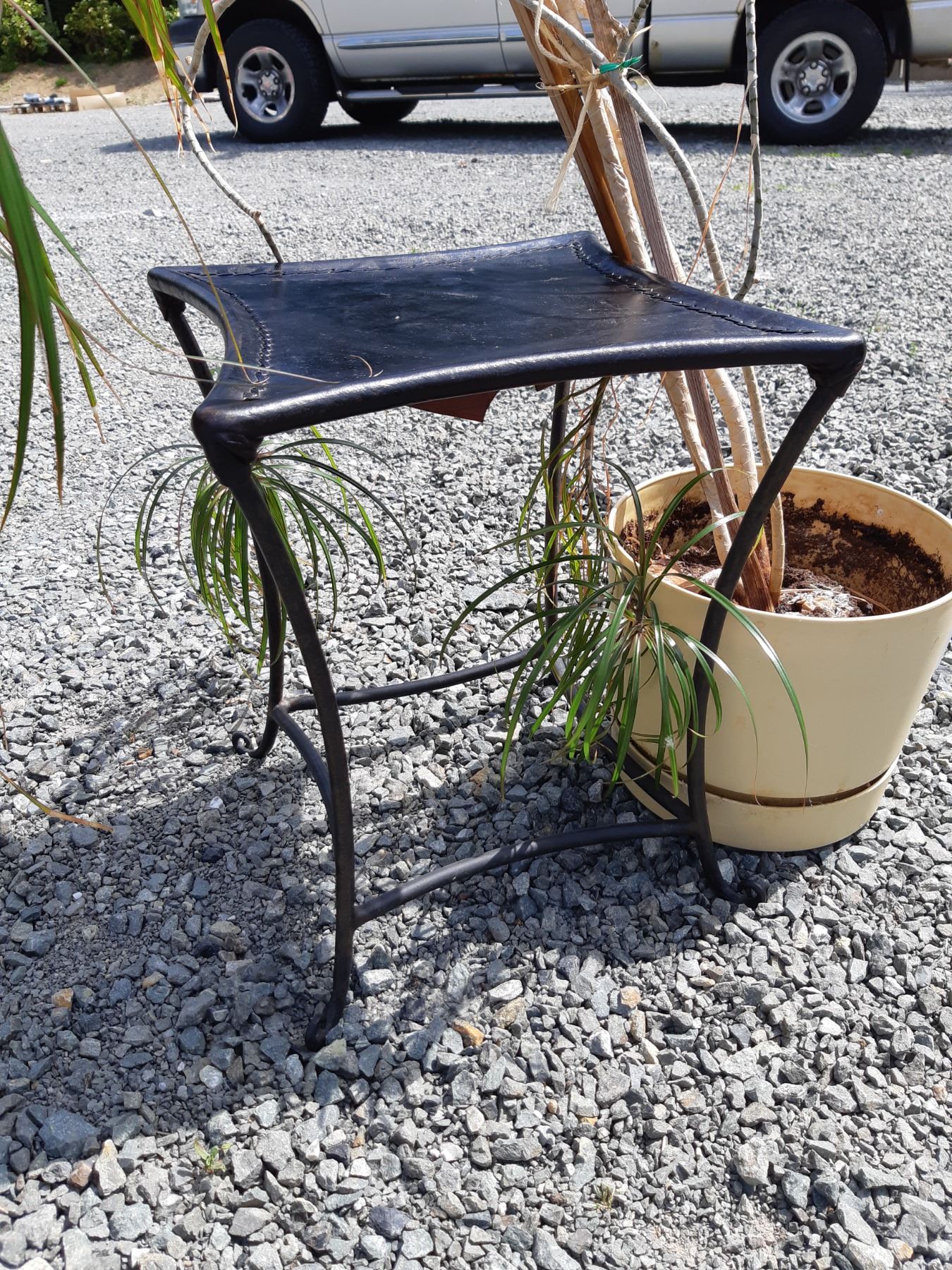 Leather and metal stool 19x1917. 4' Spider plant Pickup at 11 am