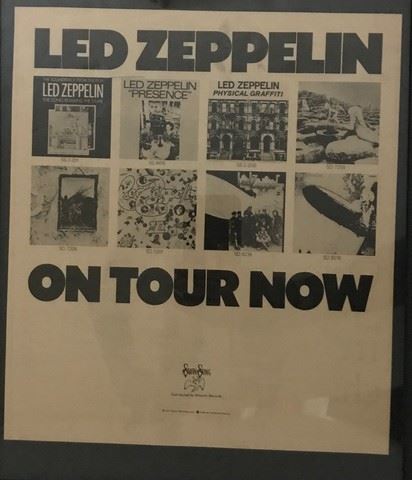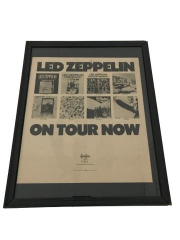Led Zeppelin framed newspaper clipping for their tour featuring 8 album covers.Dated 1977. Comes in a plexiglass frame.
