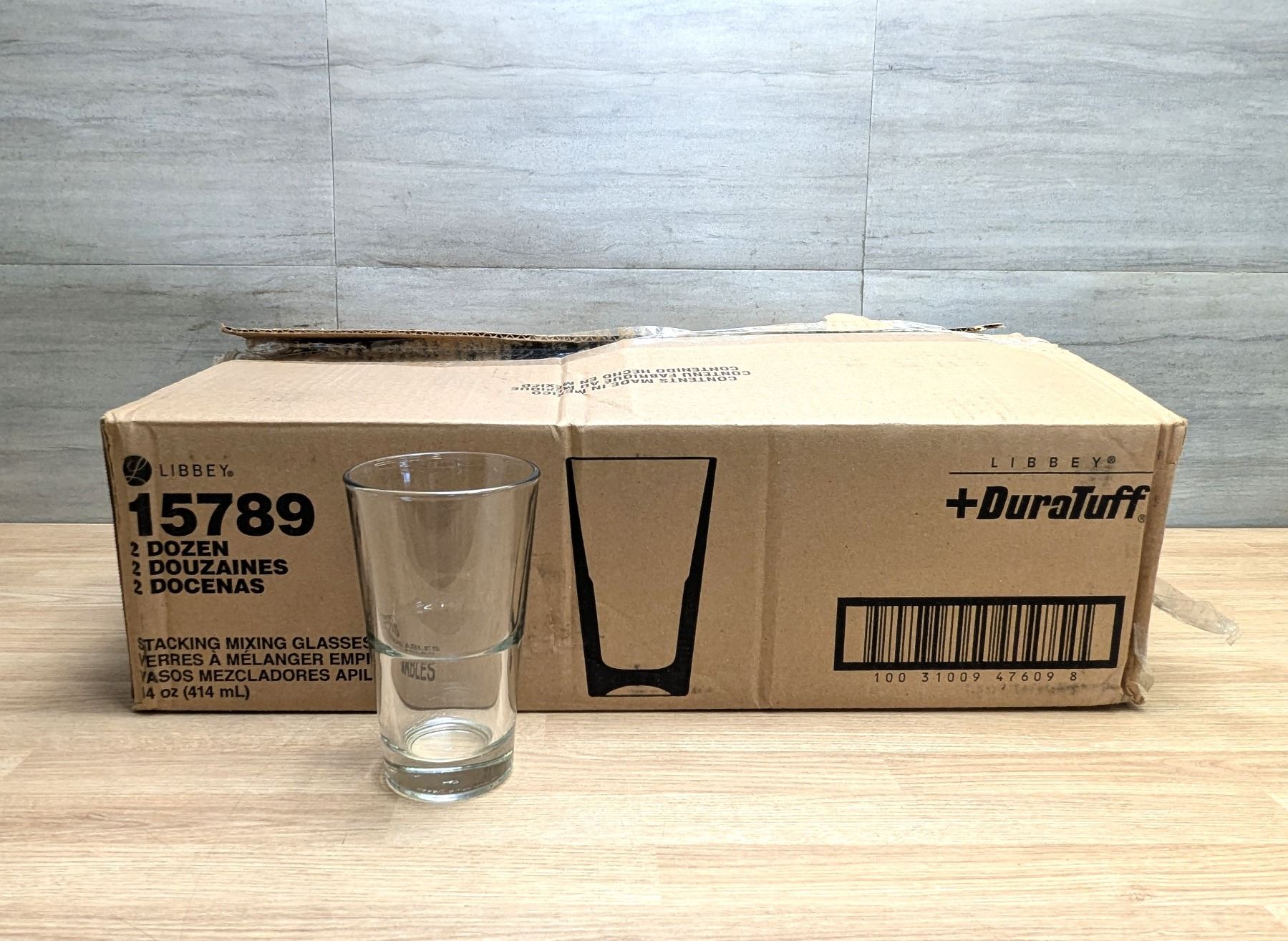Libbey + DuraTuff 14oz Stacking Mixing Glasses, 15789 - Lot of 24 ( 1 Case )| EC4-1