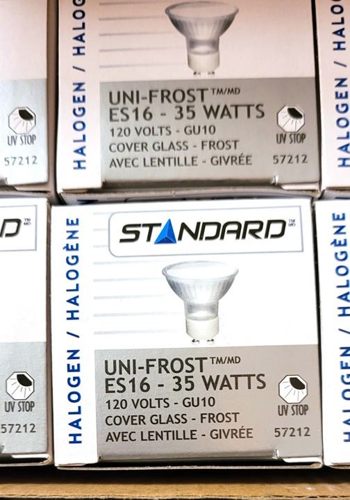 New, Uni Frost, ES16 35 watts, 120 volts GU10 Cover glass frost Avec Lentille