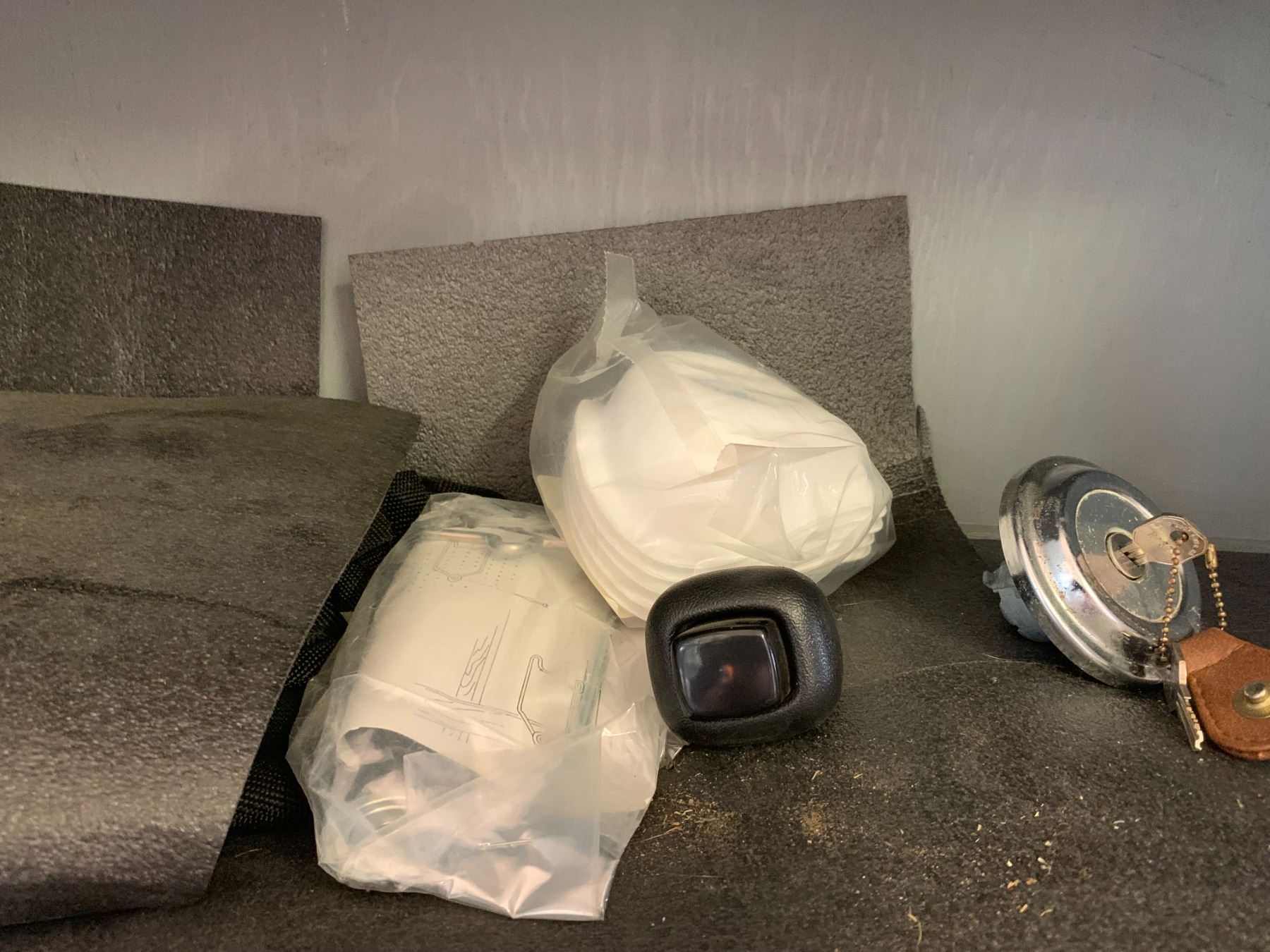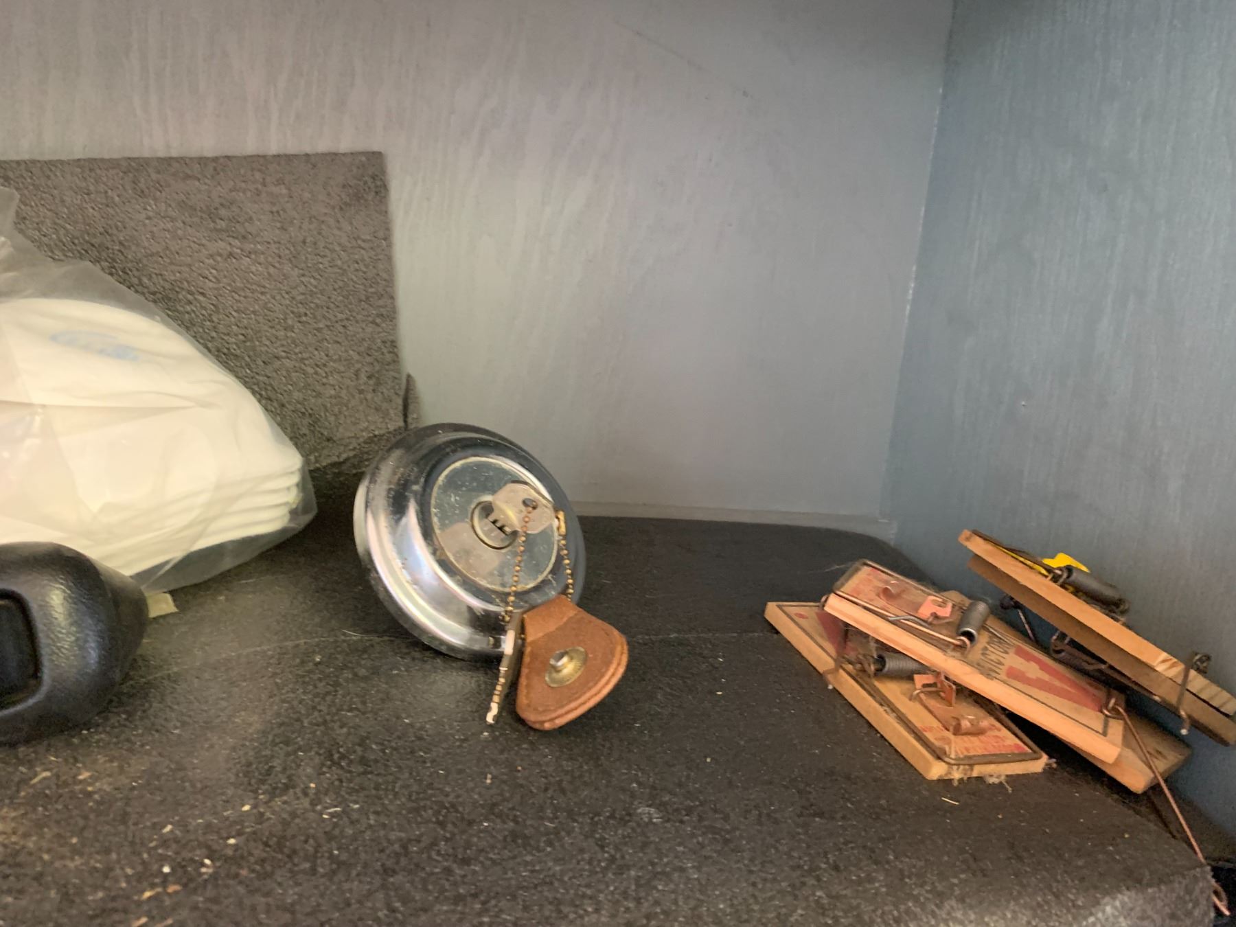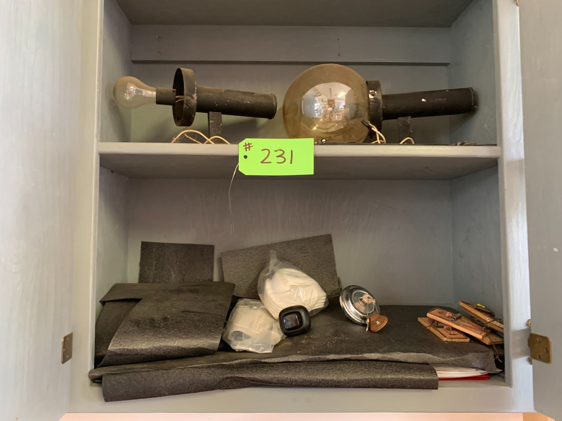 Lights, Locking Fuel Cap, Mouse Traps, & Misc. in 2 Shelf Units (Shelves do Not Go)