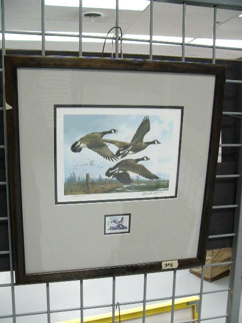 Limited Edition Print of 1984 Oregon Waterfowl Stamp print by Michael Sieve, number 10,829 of 11,825, with $5 waterfowl stamp, double matted and framed(172)