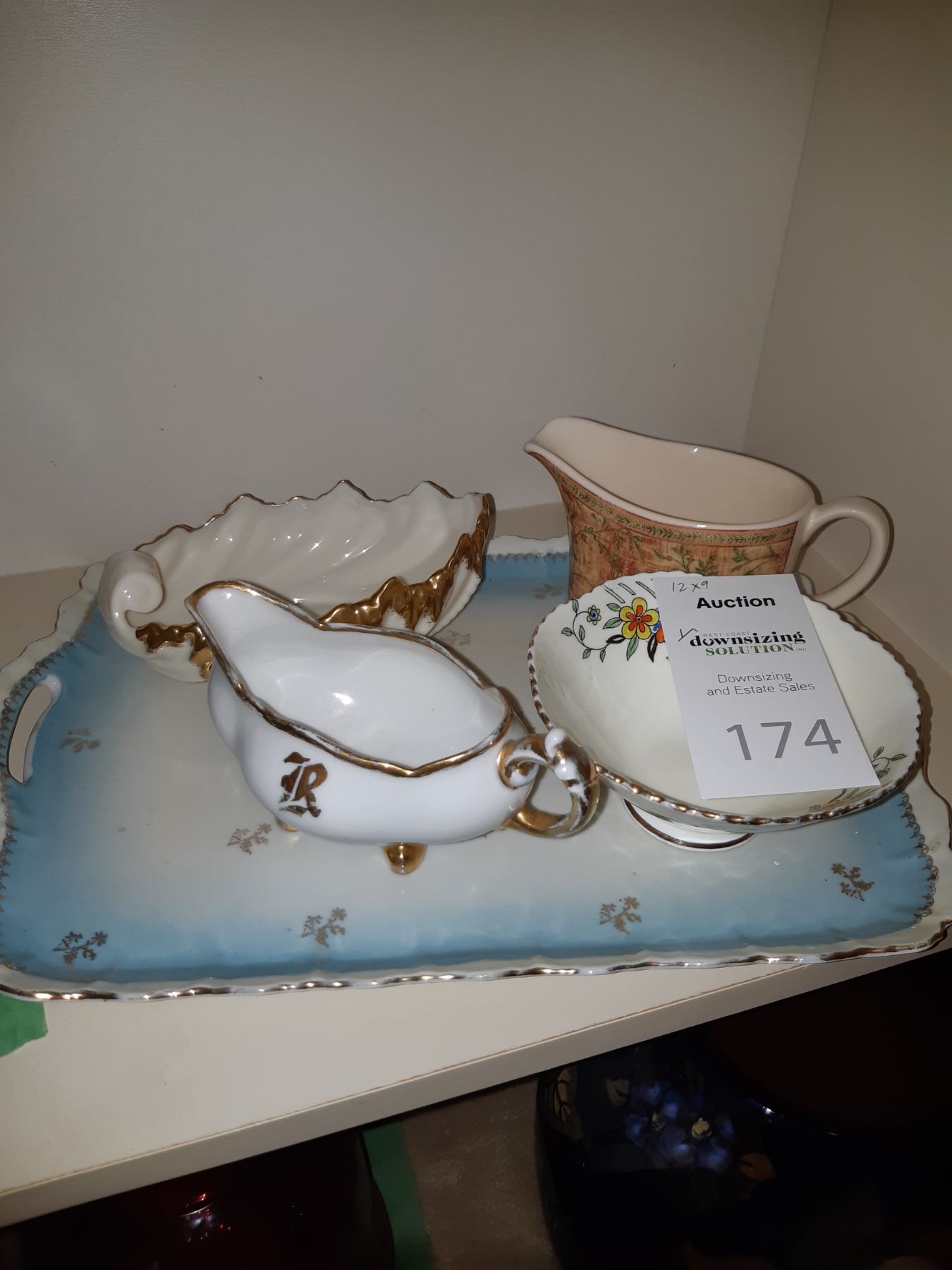 Porcelain tray 12x8. Mavis bowl, Limoges white creamer with gold rim. Lennox she'll type dish 6" wide. Bring packing and pickup at 9 am