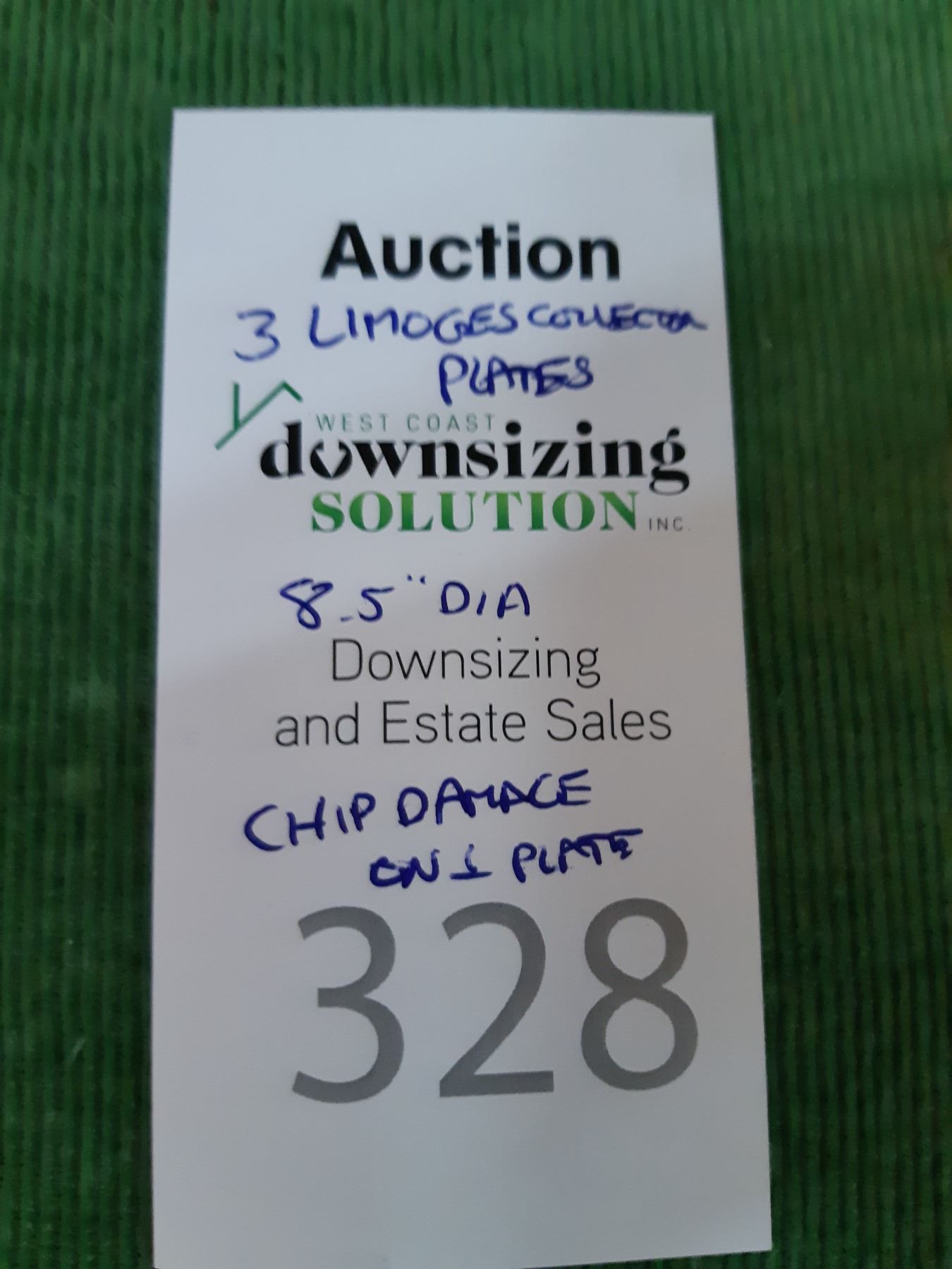 Three collector plates. 8.5. One plate chipped. Pick up 9-10