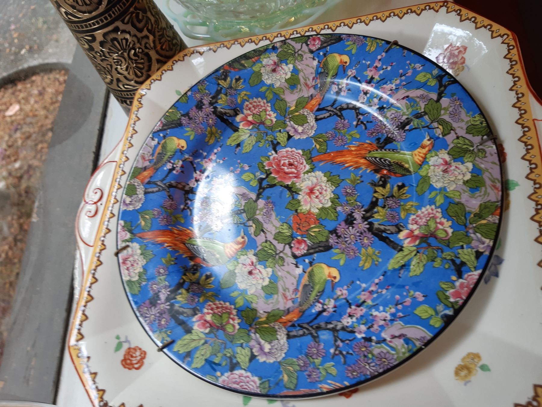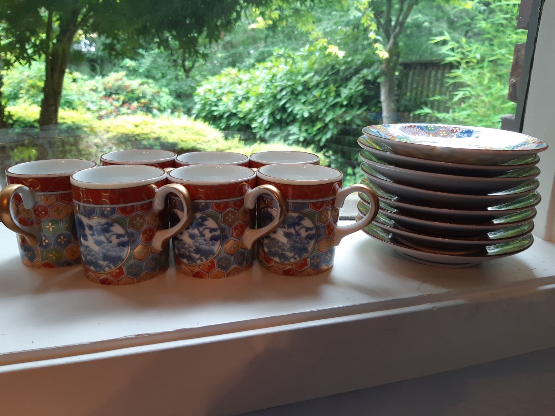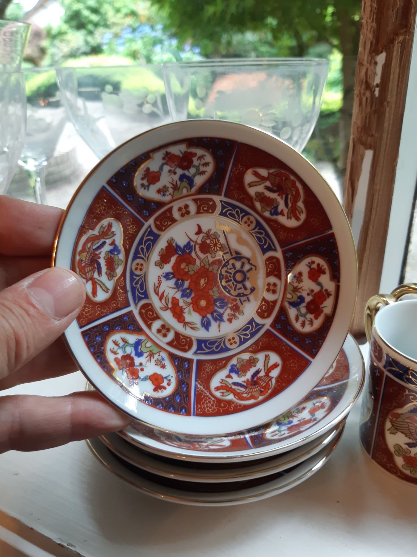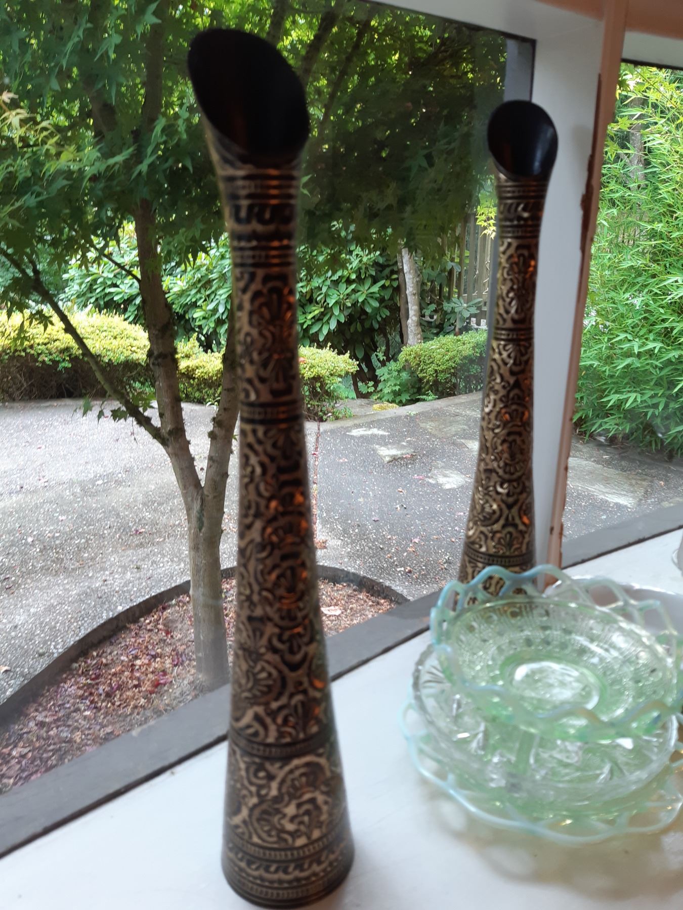 Limoges 5" & 4" wall plates, 2 x black and gold vases 16" , Antique serving plates, green and blue opal depression glass dishes. Japanese Teecups and saucers, one set for 4 and the other has7 cups and 8 saucers. Wine glasses, one has a chip and more. Bring packing supplies and pickup at 9 am