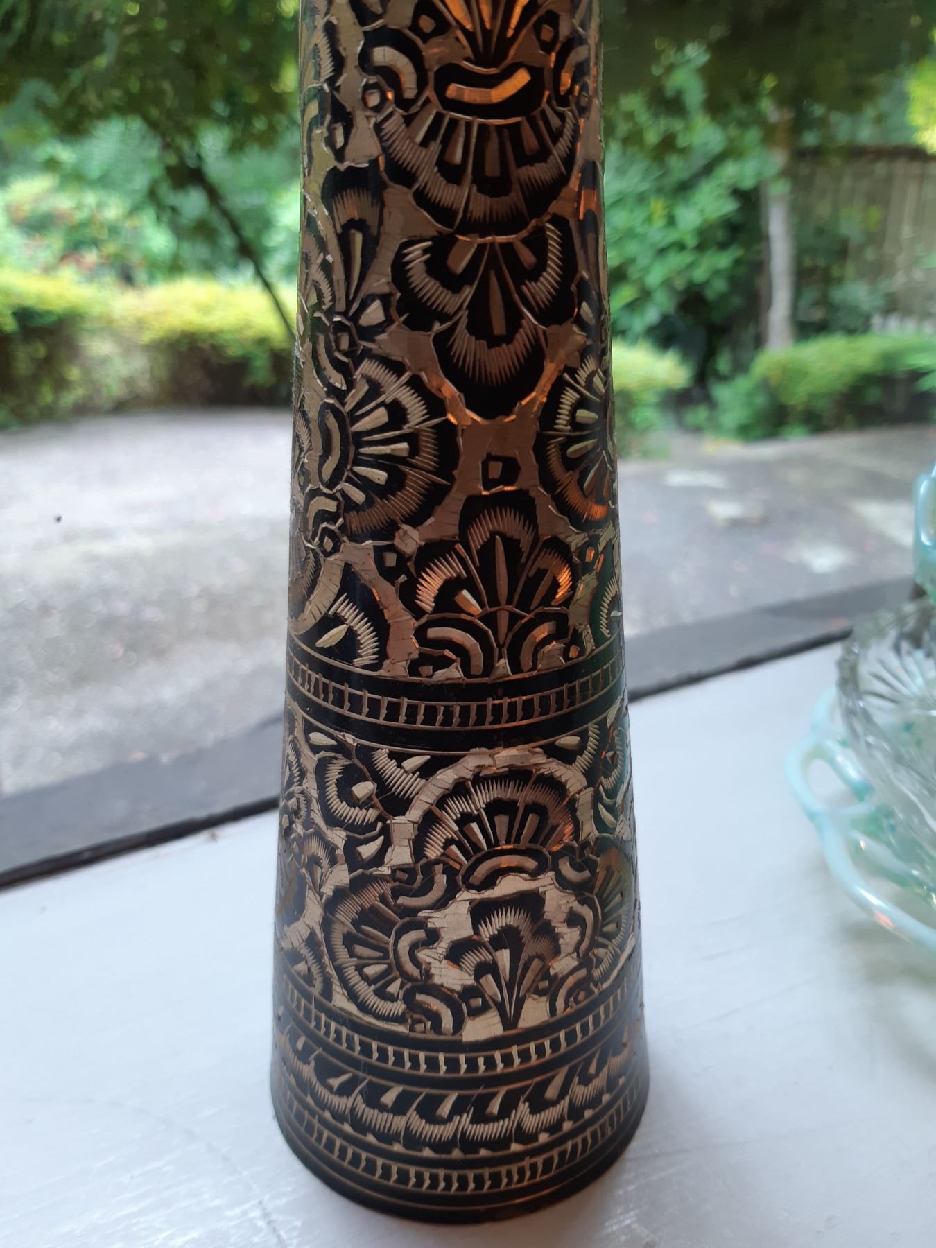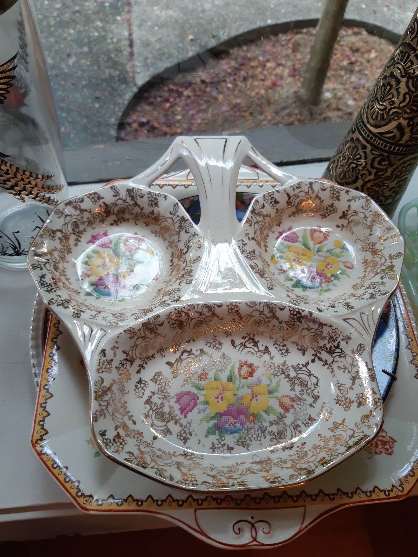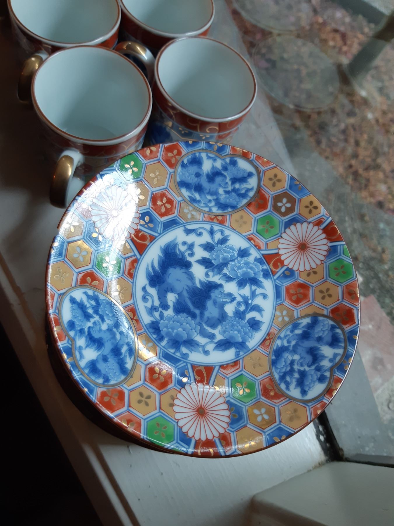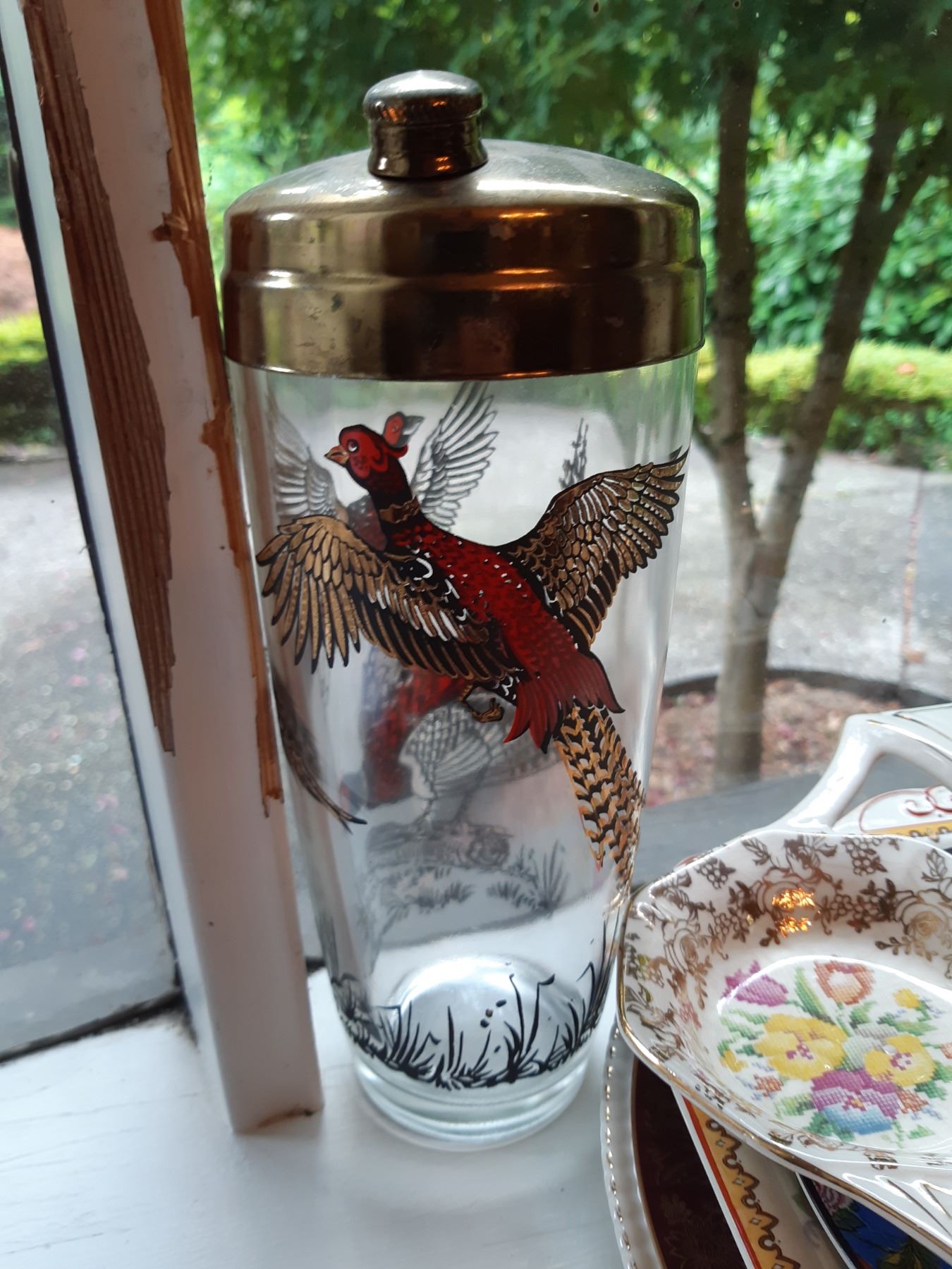 Limoges 5" & 4" wall plates, 2 x black and gold vases 16" , Antique serving plates, green and blue opal depression glass dishes. Japanese Teecups and saucers, one set for 4 and the other has7 cups and 8 saucers. Wine glasses, one has a chip and more. Bring packing supplies and pickup at 9 am