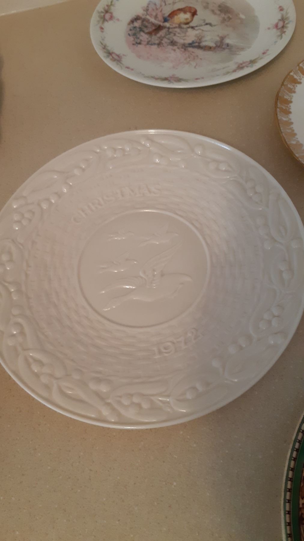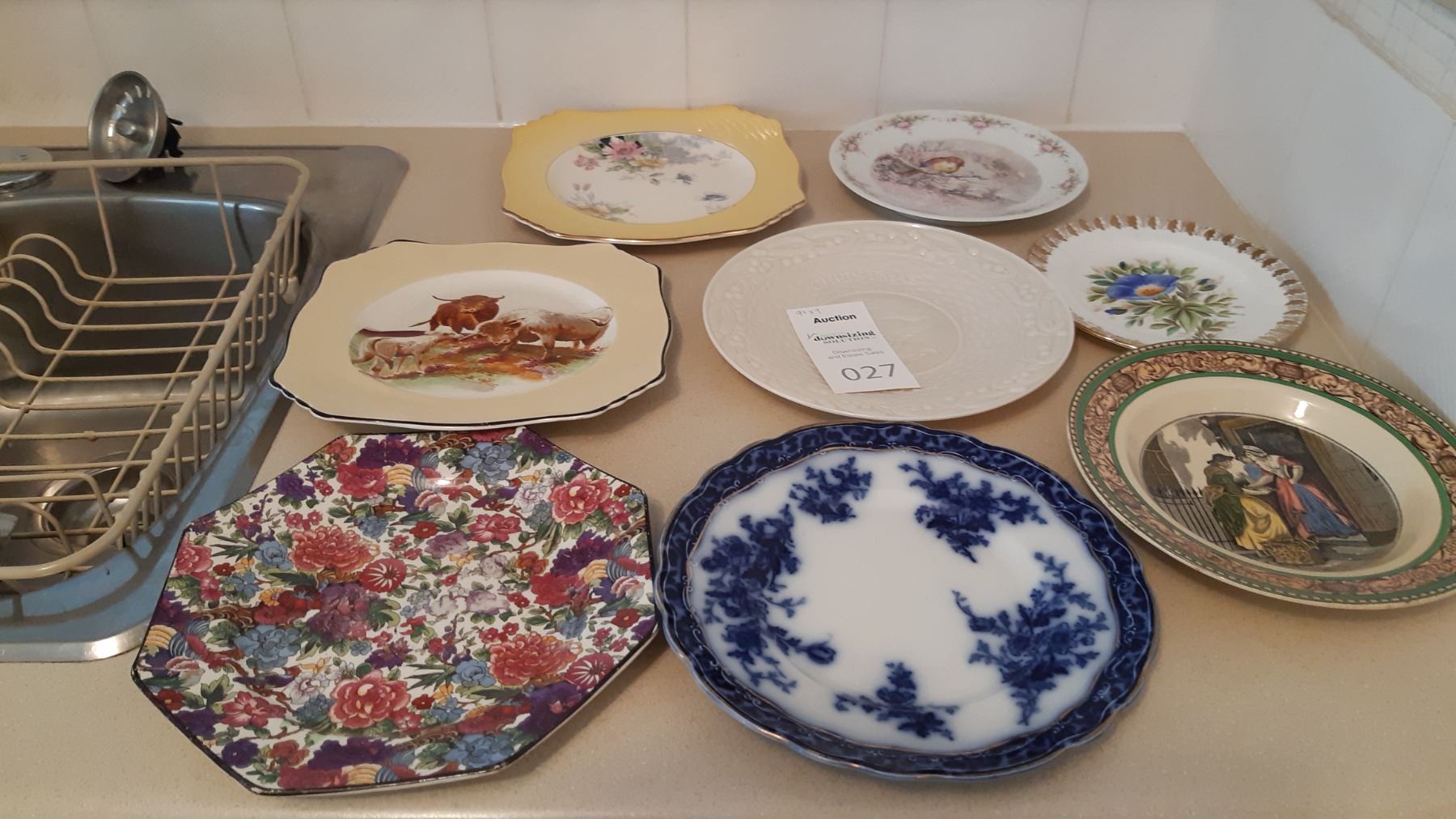 Eight wall plates, some with light wear on rims. Largest 9". Bring packing materials.