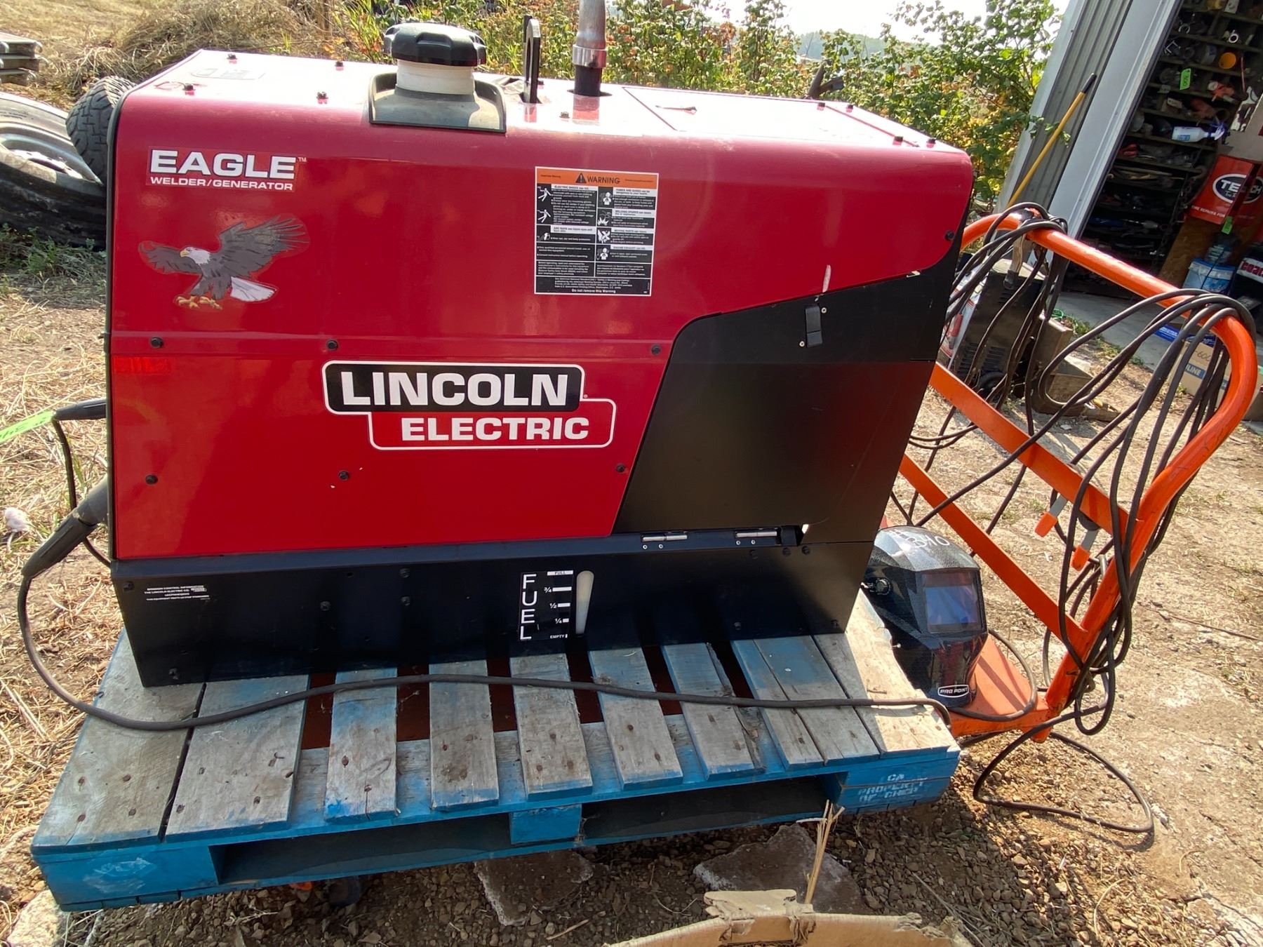 Lincoln Eagle Gas Welder Generator c/w Cables, 2 Helmets & Orange Cart,51 Original Hrs.