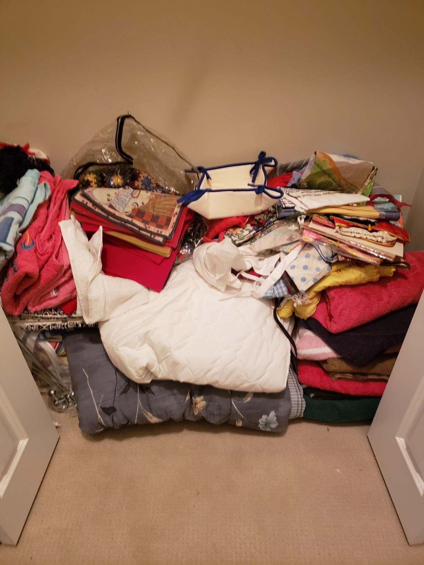 Assortment of table linens, table cloths, mattress cover for Q.S.B ,pillow cases & more. Bring packing supplies & pickup at 10 am