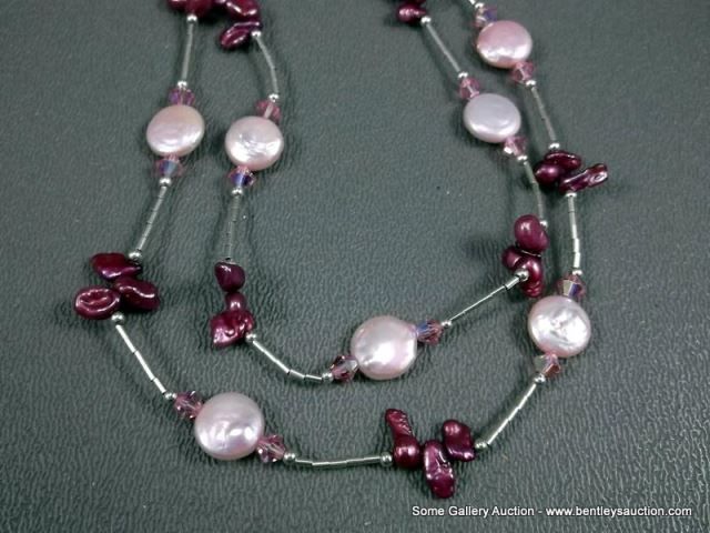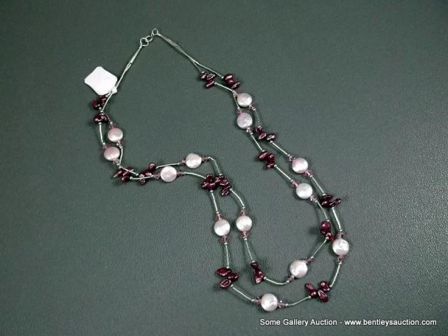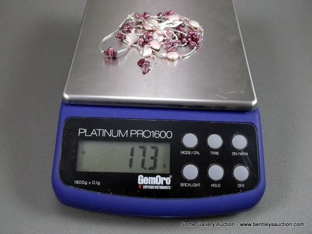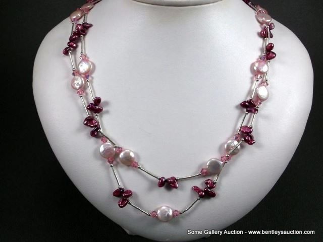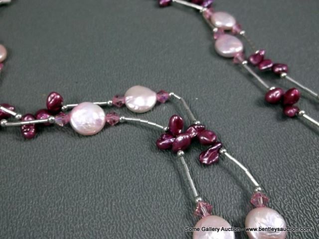Liquid Sterling Silver Necklace w/ Dark and Light Pink Stones Weight: 17.3 Grams Retail: $139.00