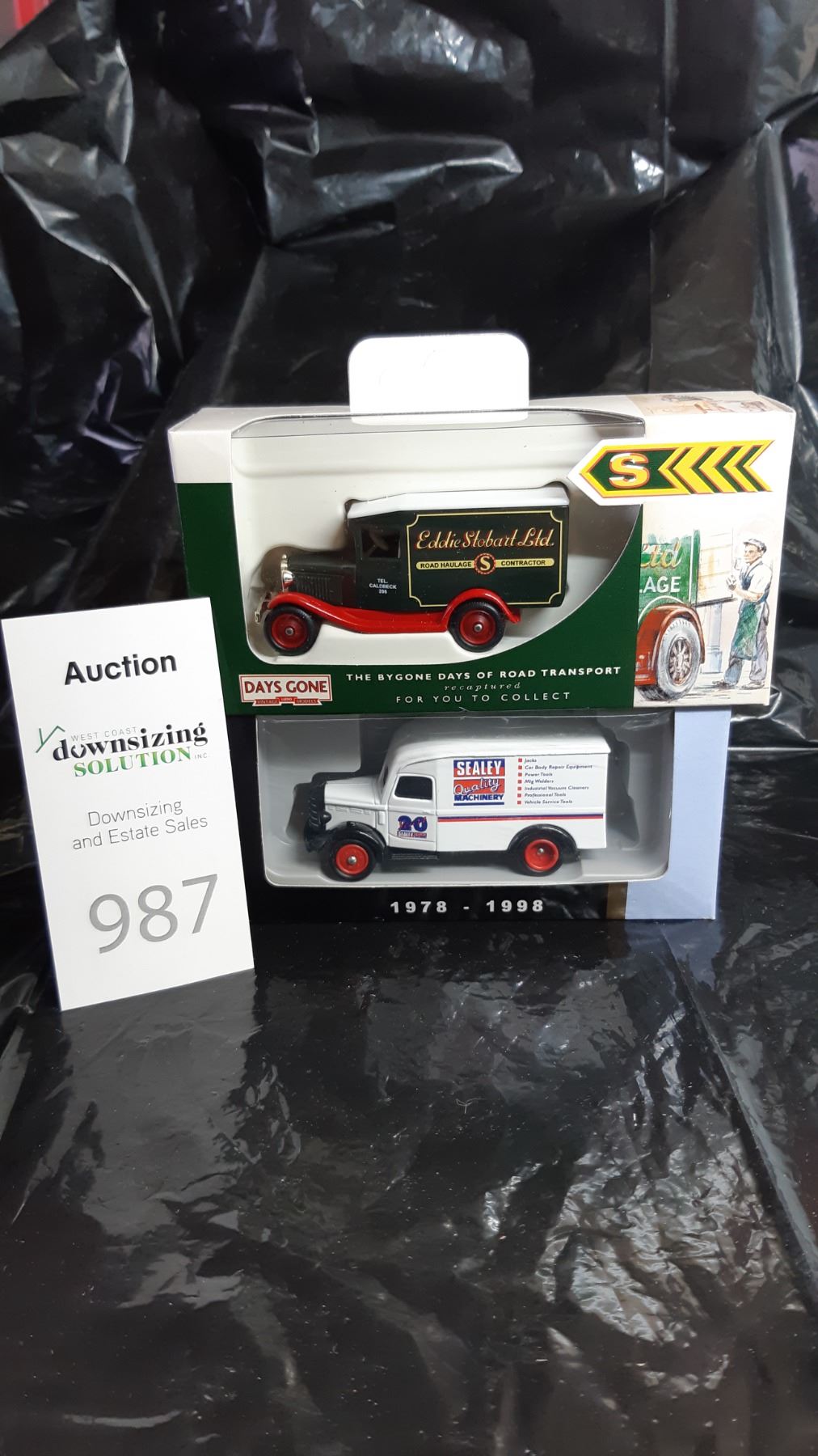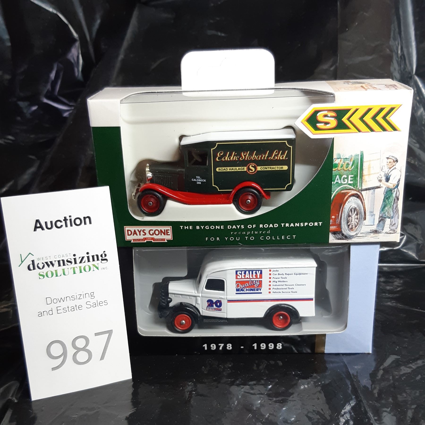 2 miniature toy trucks new in boxes. Pickup at 9 am