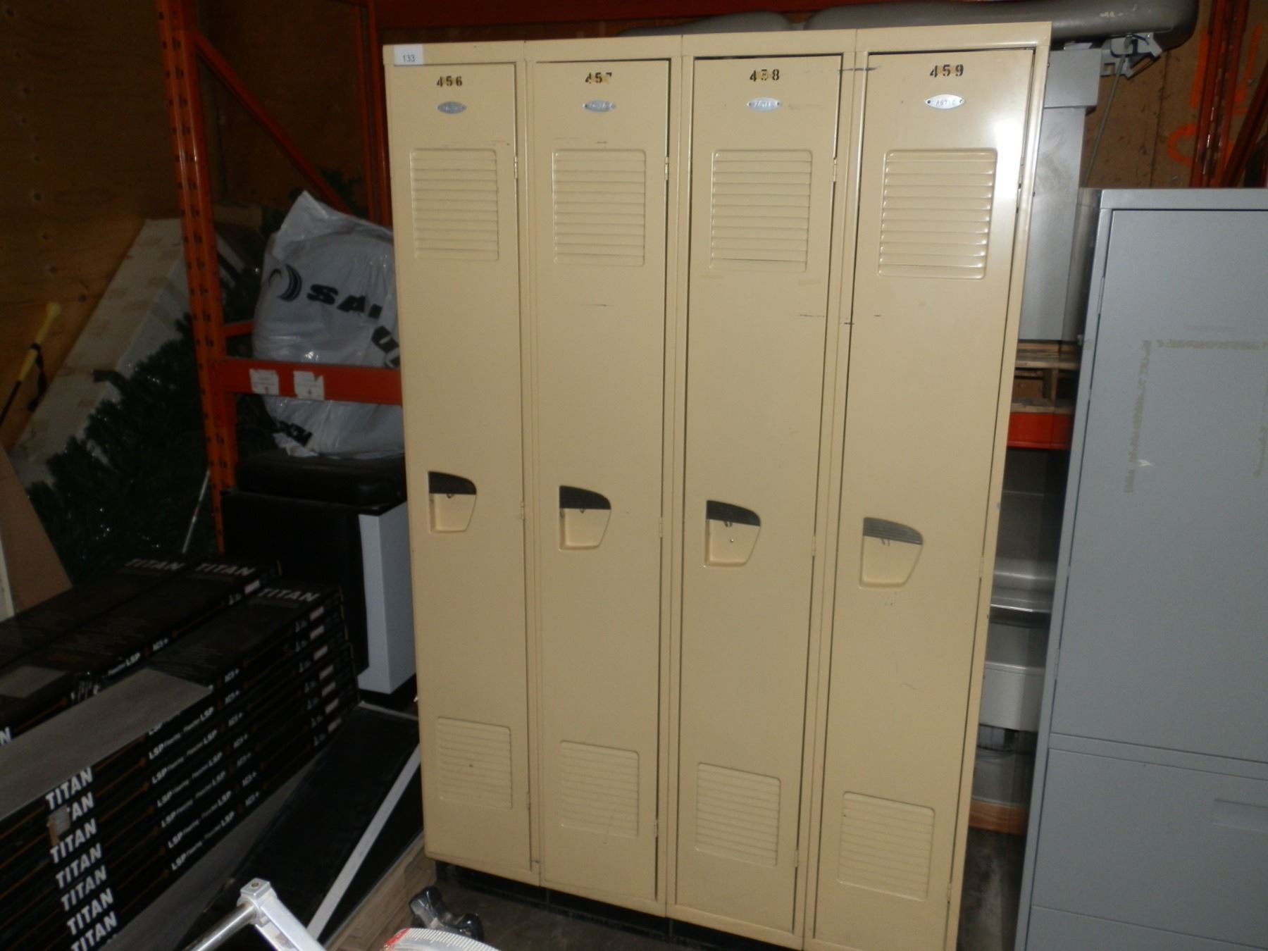 Lockers one bank of 4, 4 feet wide, 6 feet high, 18" deep, in good condition....used