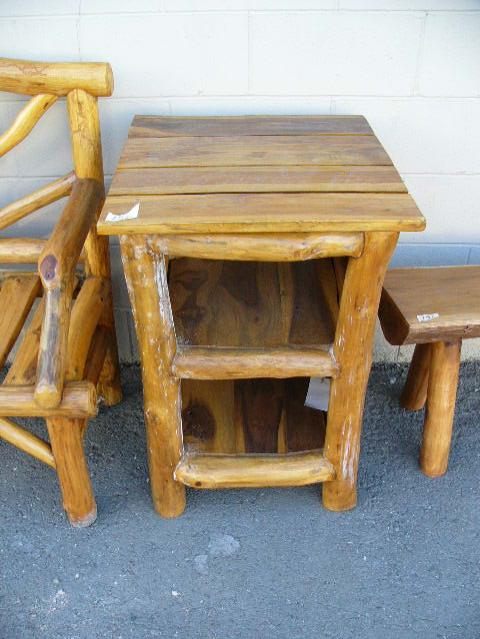 Log style end table with 2 shelves- 32" H, 23-1/4" D, 21-1/2" W (1)
