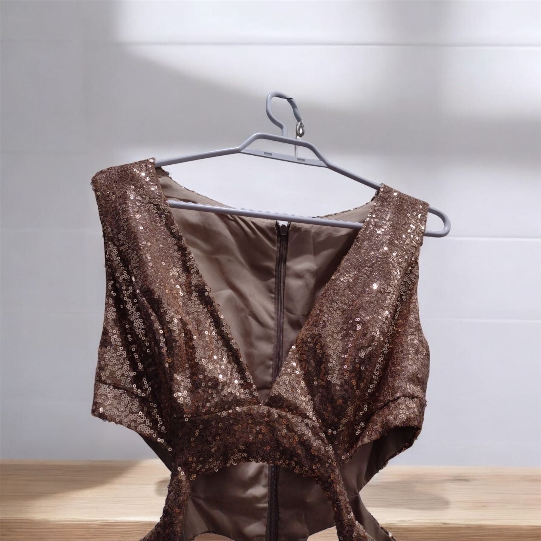Long Brown Glittery Double Slit Party dress with waist cuts Size Small