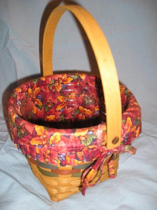 1996 Shades of Autumn Maple Leaf basket that includes fabric liner and plastic protector.