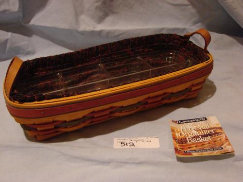Longaberger personal organizer basket w/fabric liner, divided plastic protector, and leather handles.