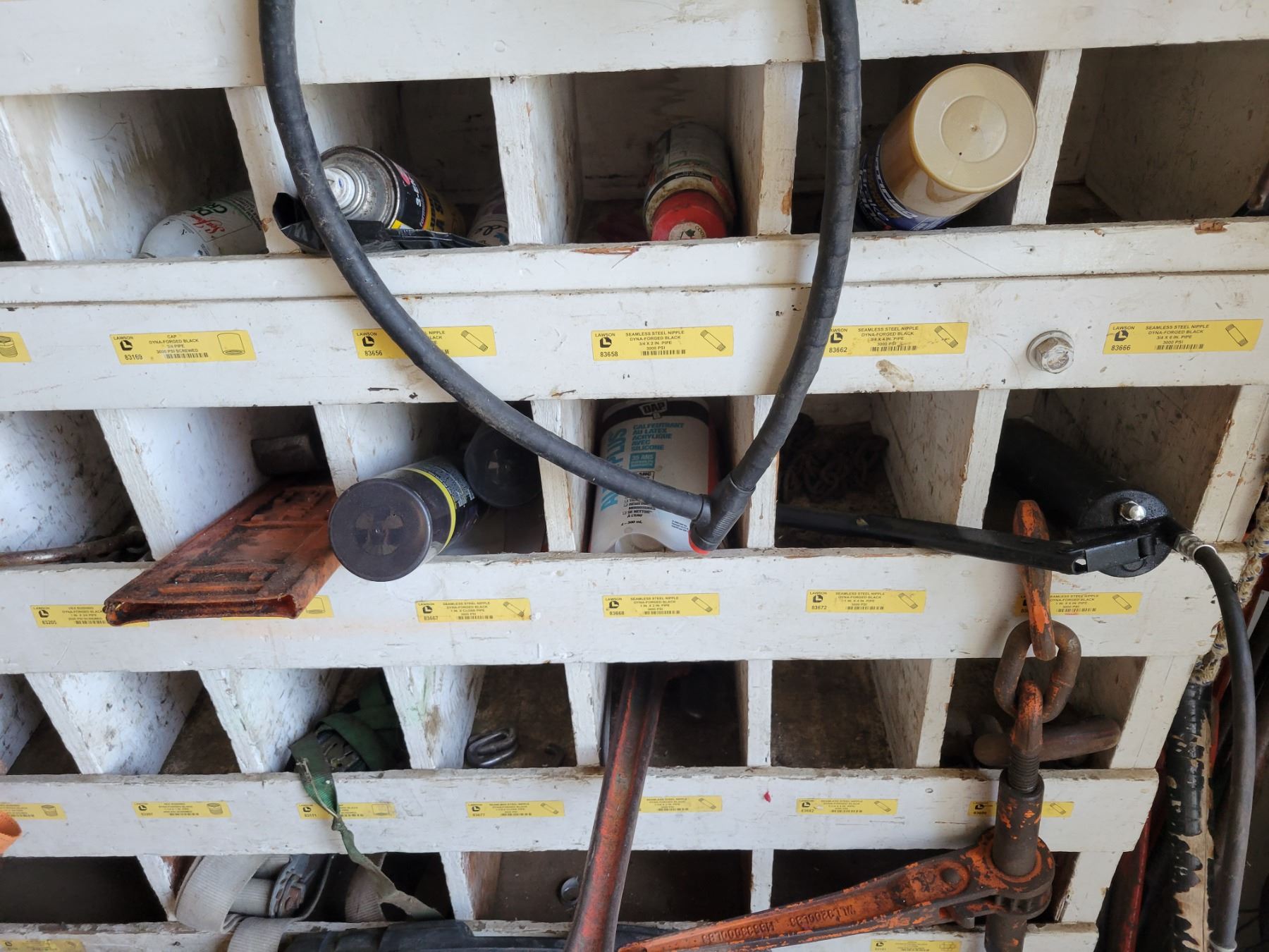 Lot (311 & 312) 1987 Roussy 48 ft Tandem Van, Roof is good c/w steps & has a key. Has one flat tire. Selling c/w contents- bolt bins, tools, misc & alum. steps. SN. 2R1B3T3CXH1005406